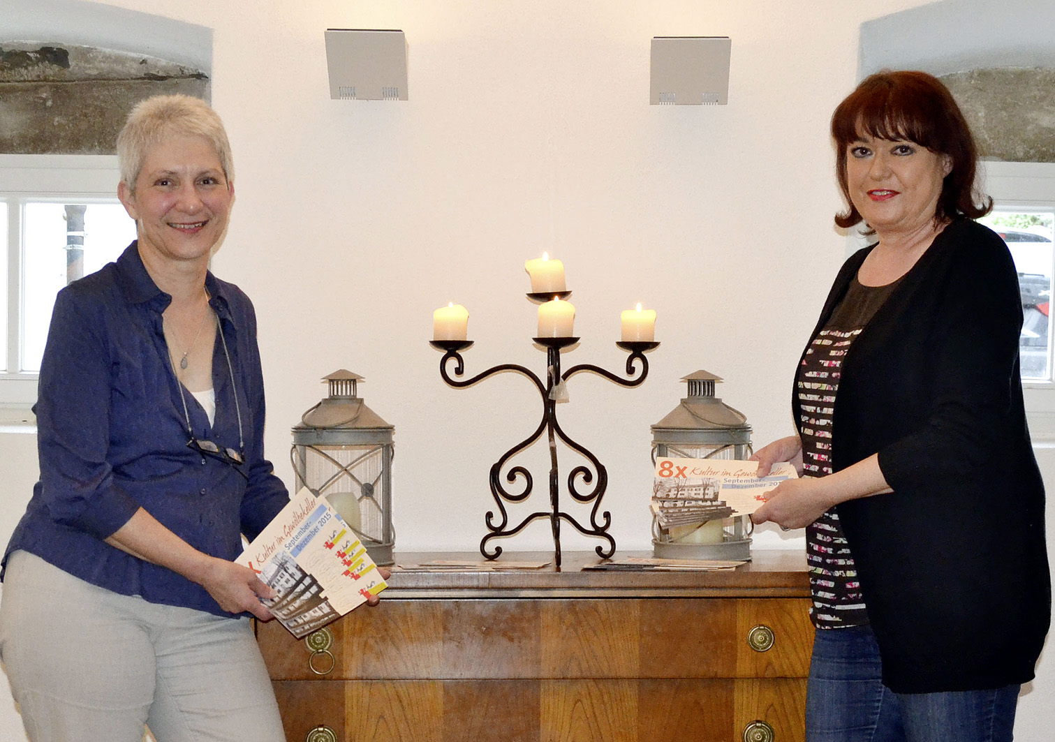 Christa Volkmann, Leiterin der Letmather Bücherei-Zweigstelle, und Susanne Manasterni, Pressesprecherin des Fördervereines Haus Letmathe (r.), laden herzlich ein zum Besuch der Herbst-Veranstaltungen in der Reihe „Kultur im Gewölbe".