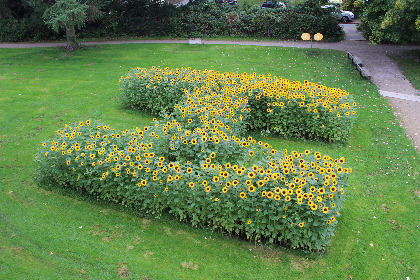 Auf der Wiese am Paschenberg ist ein ´H´, das natürlich für Herten steht, aus Sonnenblumen entstanden.