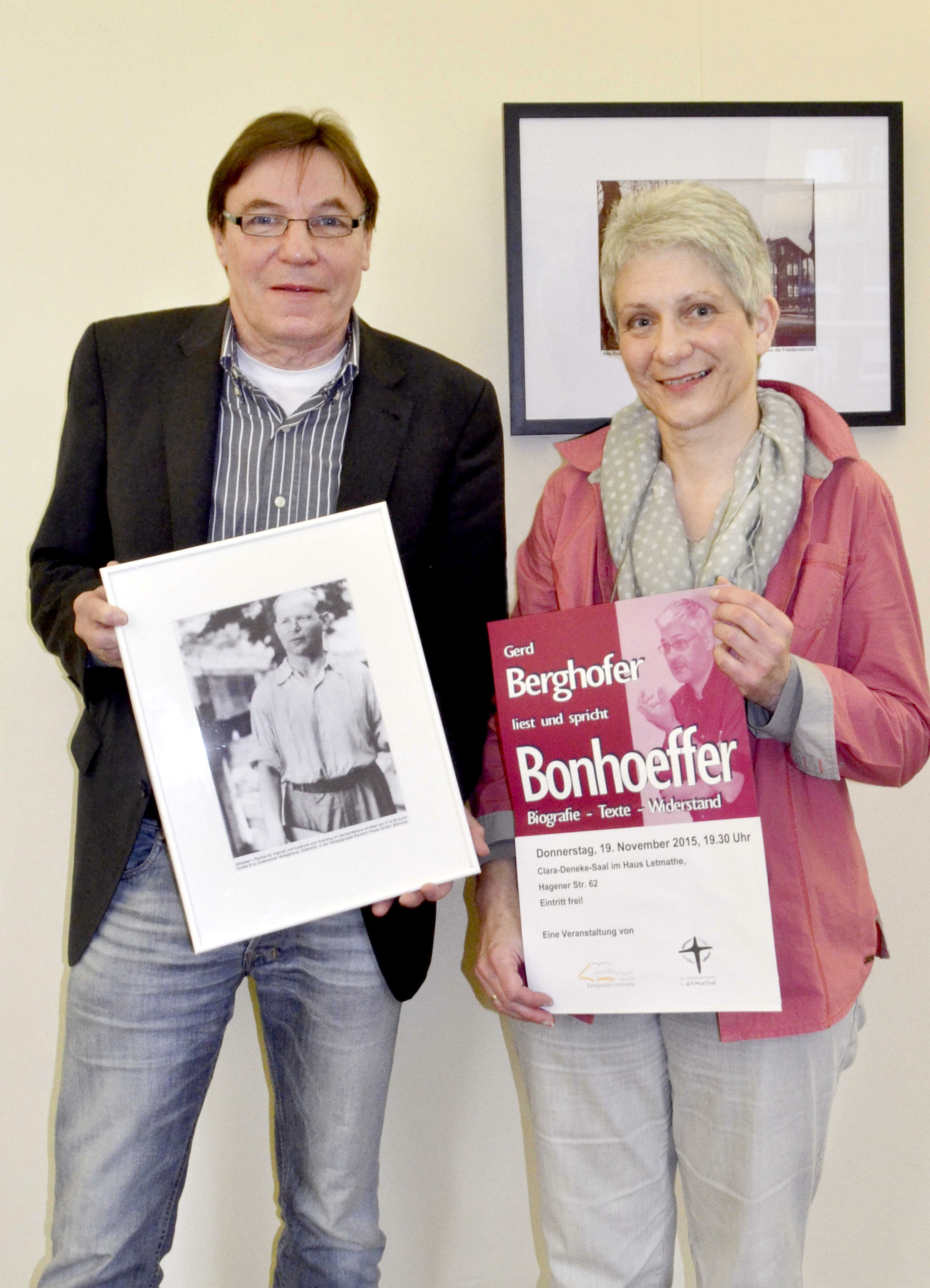 Pfarrer Burckhardt Hölscher von der Evangelischen Kirchengemeinde Letmathe und Büchereileiterin Christa Volkmann laden herzlich ein zu einem interessanten Abend mit dem Rezitator und Schriftsteller Gerd Berghofer über das Leben und Wirken Dietrich Bonhoeffers.