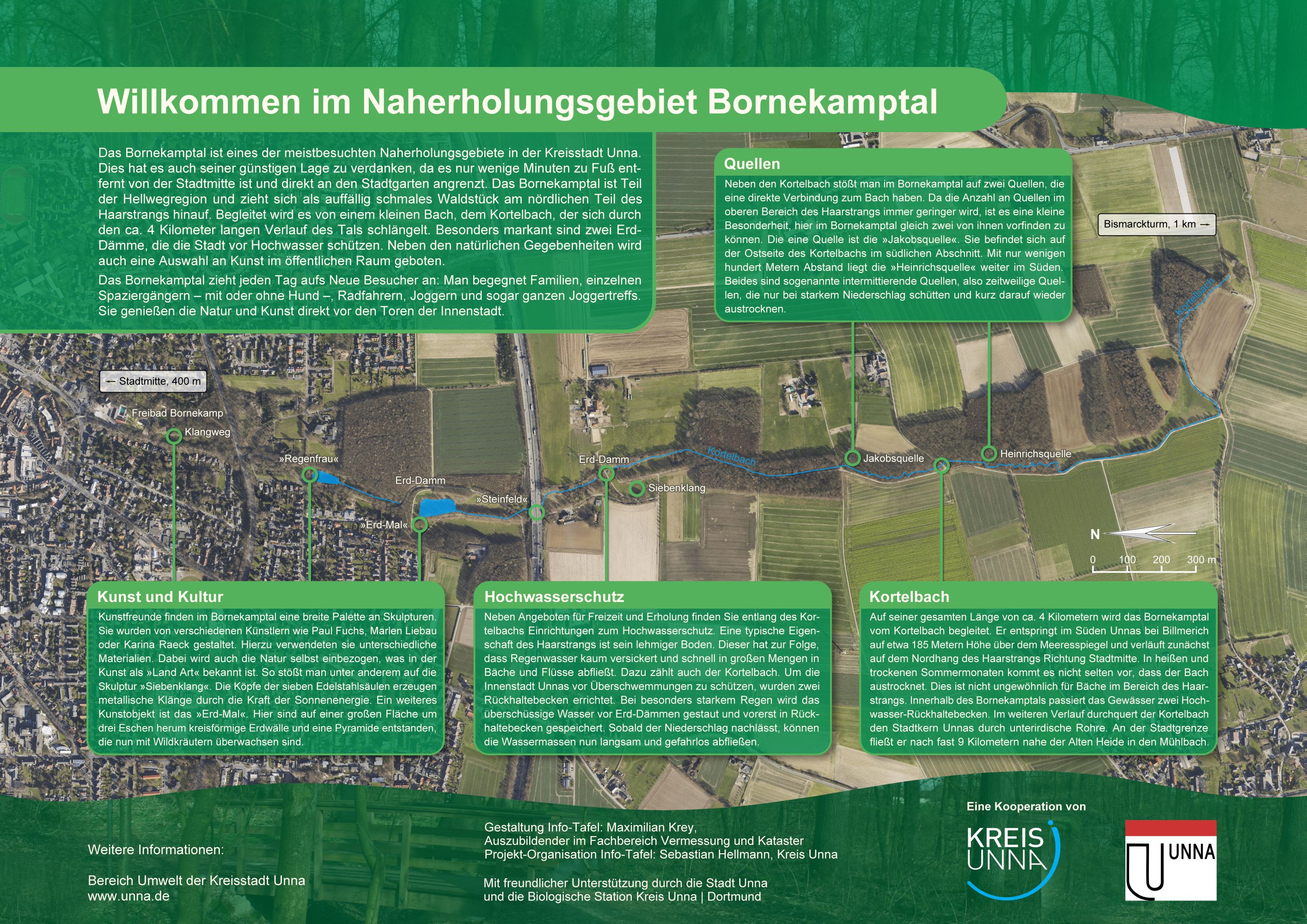 Die Infotafel „Willkommen im Naherholungsgebiet Bornekamptal“. Grafik: Kreis Unna – Fachbereich Vermessung und Kataster