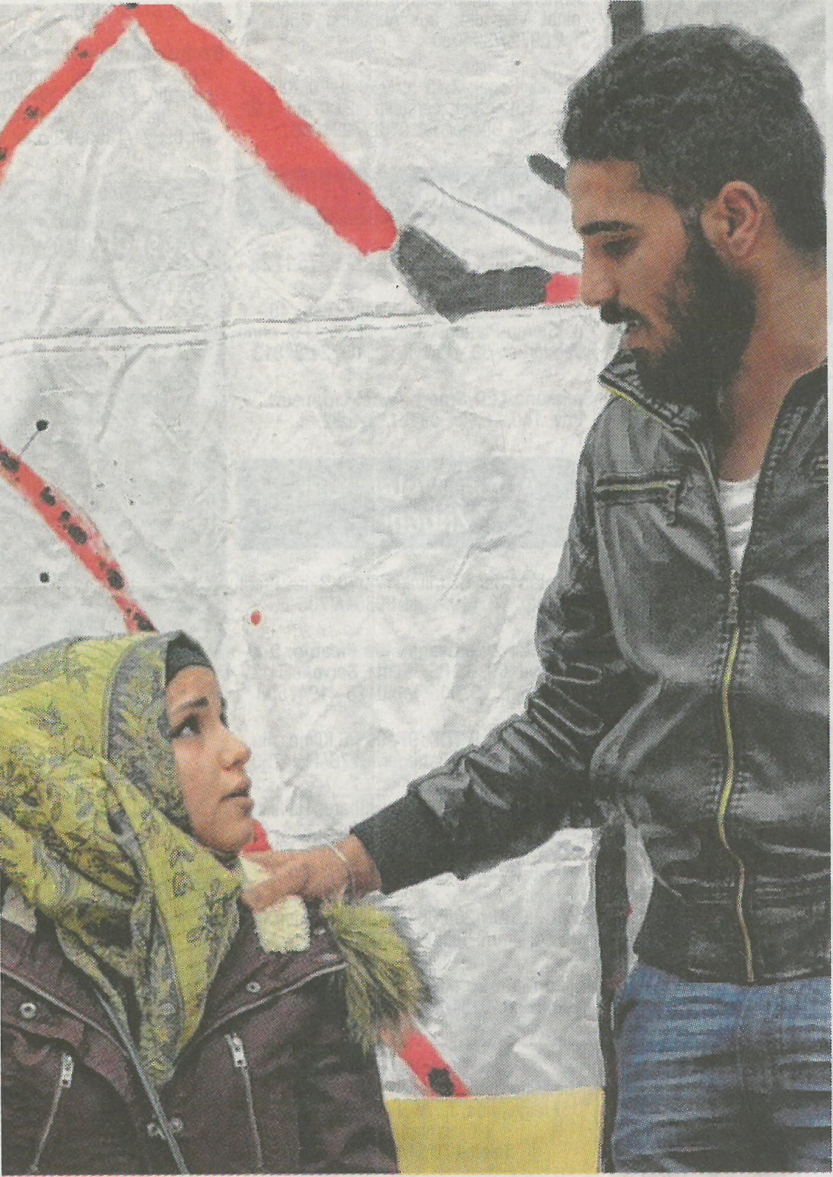 Szene aus der Premiere des Stückes. Abschied von der Familie, die inmitten des Krieges zurückgelassen werden muss, fällt schwer. Foto: Pat Christ