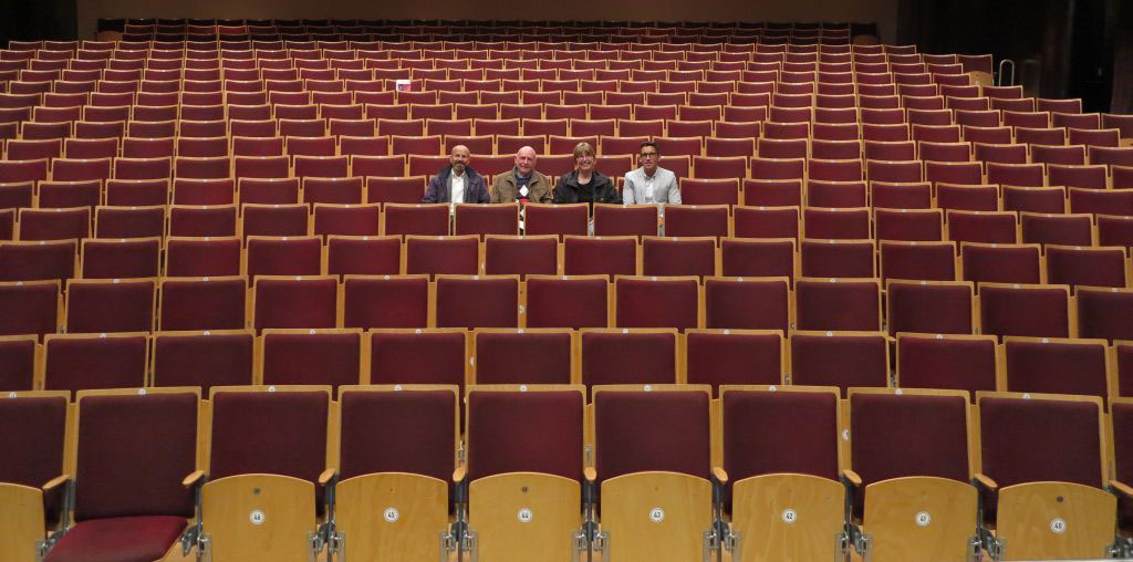 Geben „Grünes Licht“ für die große Gala am 15. April: Dirk Klauke, Claus Karst, Andrea Reichart und Matthias Quaschnik (v.l.) besprachen im Iserlohner Parktheater letzte Details für die DELIA-Literaturpreisverleihung.