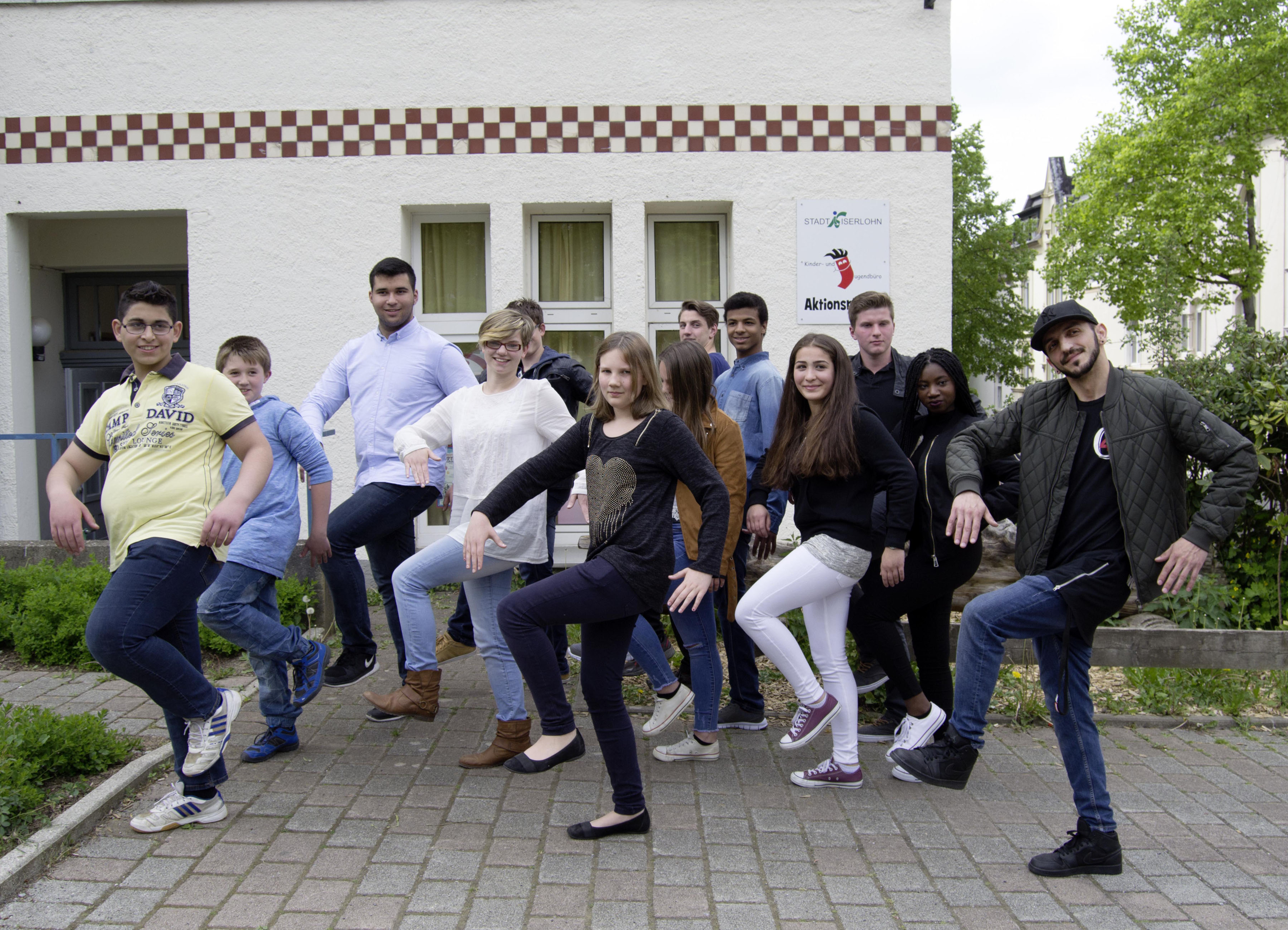 Gemeinsam mit Tanzlehrer Adian Cakay (r.) probierten die KiJuRats-Mitglieder bei der Vorstellung ihres Streetdance-Projektes schonmal ein paar „coole moves“ aus.