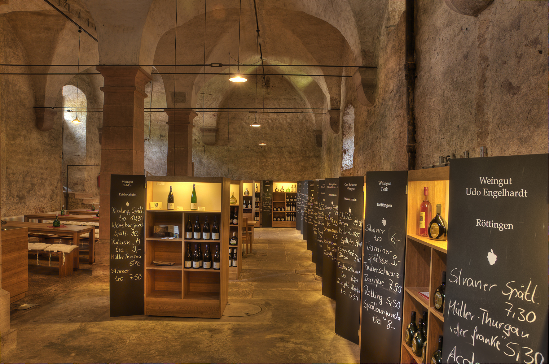 Die Vinothek im Kloster Bronnbach verfügt über ein reichhaltiges Sortiment an regionalen Weinen. Von Freitag, 22. Juli, bis Sonntag, 24. Juli, werden Müller-Thurgau-Weine zur Verkostung angeboten. Foto: Eigenbetrieb Kloster Bronnbach