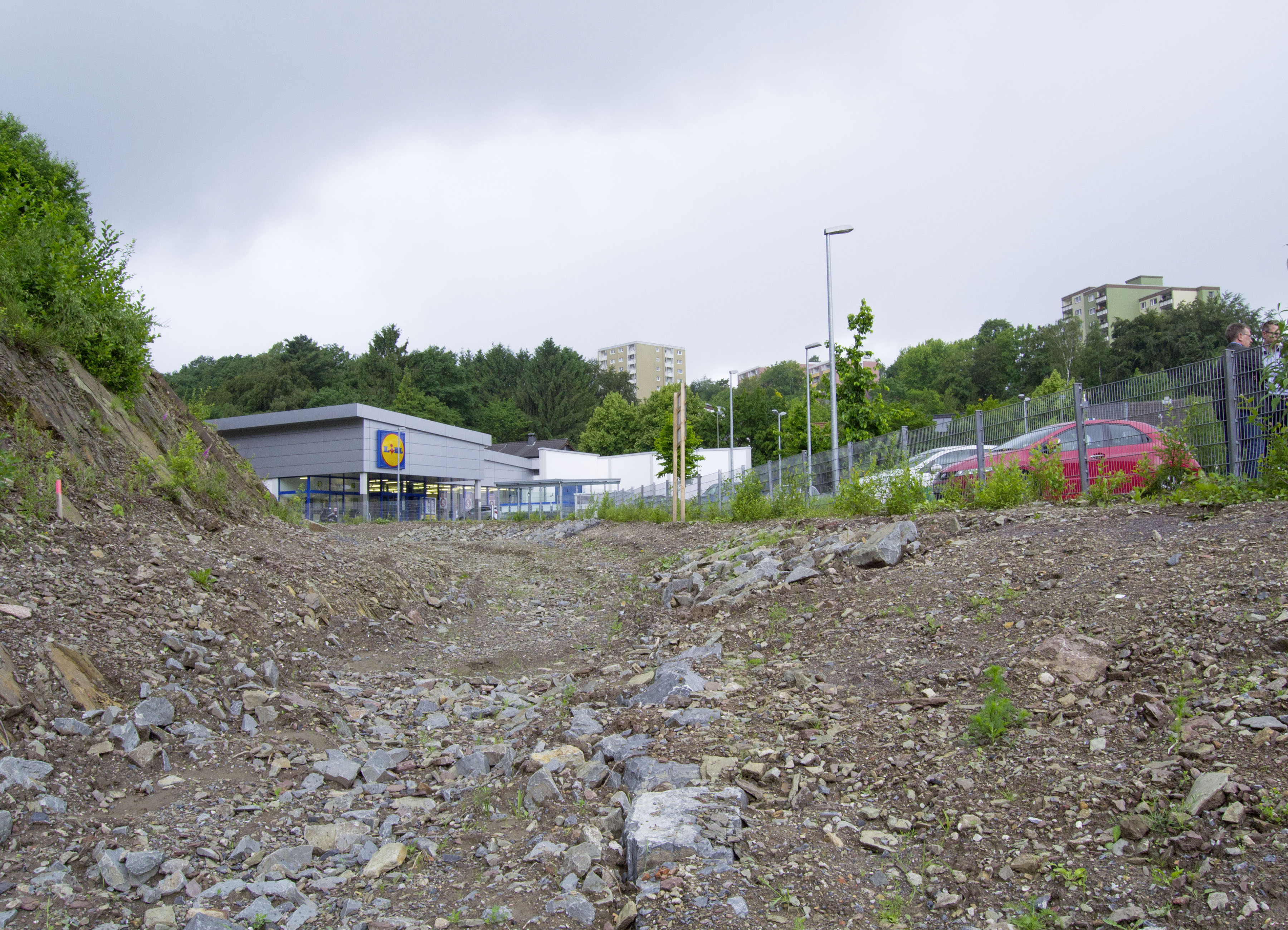Der Bach verläuft auch entlang der neu angesiedelten Märkte und mündet nach Querung des Tannenwegs in den Baarbach.