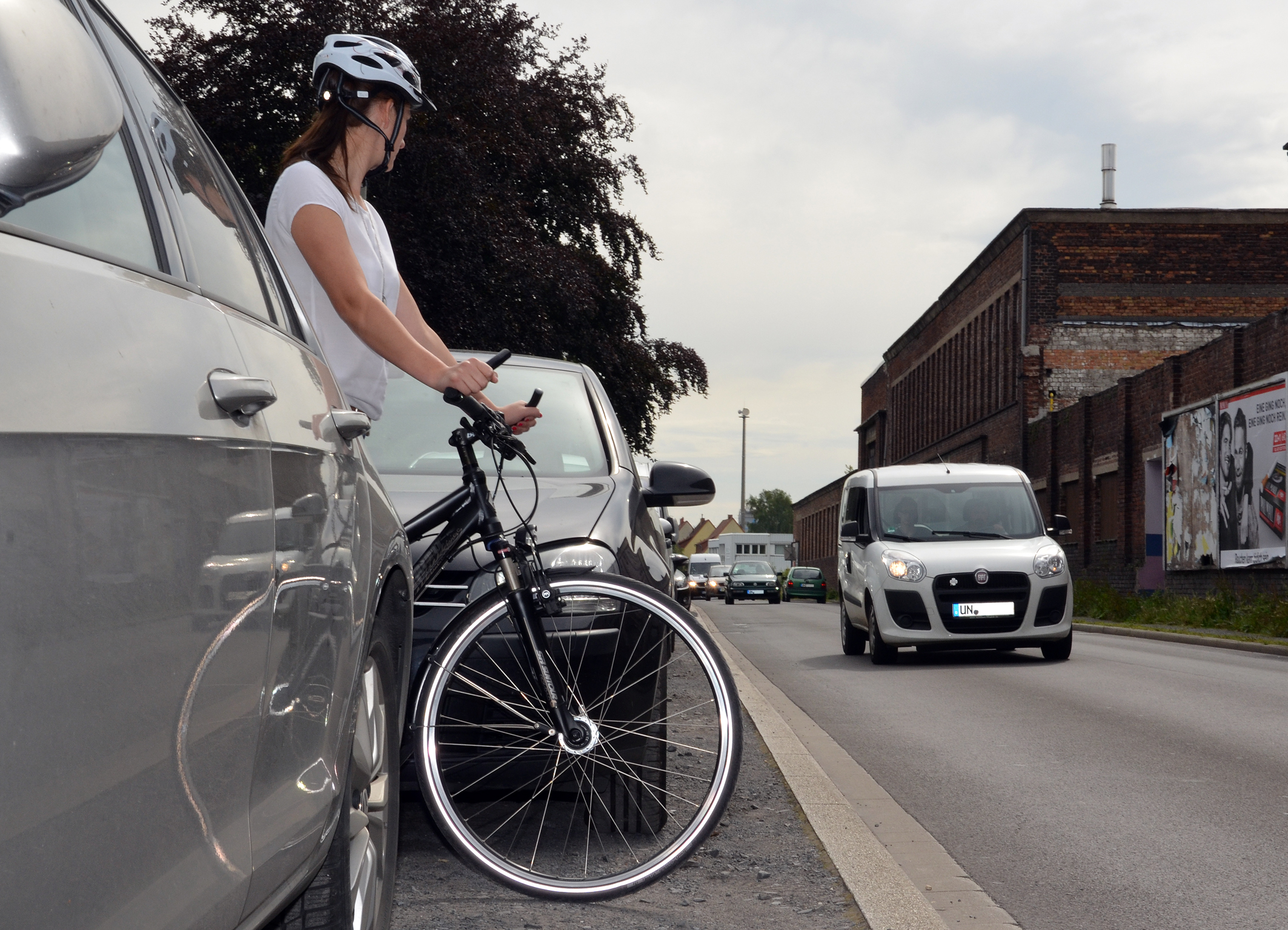 Nicht optimal: Wer die Straße queren möchte, sollte sich eine bessere Ausgangsposition suchen als zwischen parkenden Autos. Foto: B. Kalle – Kreis Unna
