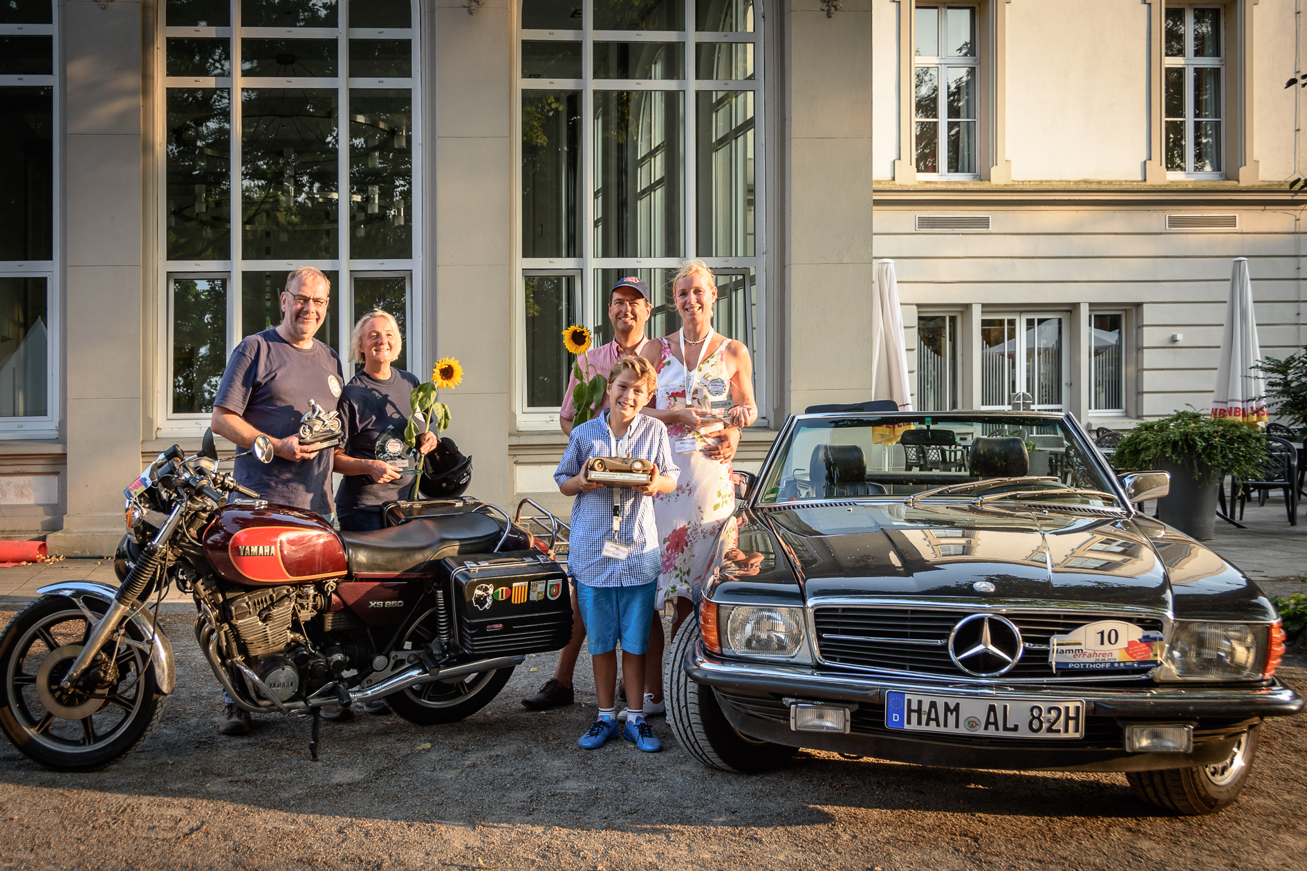 Oldtimer-Rallye „Hamm erFahren 2016“ Gesamtsieger „Motorräder“: Heinz-Martin Muhle mit Beifahrerin Martina Sommer-Muhle auf Yamaha XS 850 (1980) Gesamtsieger „Auto“: Anja Laube mit Beifahrern Andreas und Henry Laube im Mercedes Benz 280SL (1982) Foto: Sabine Begett