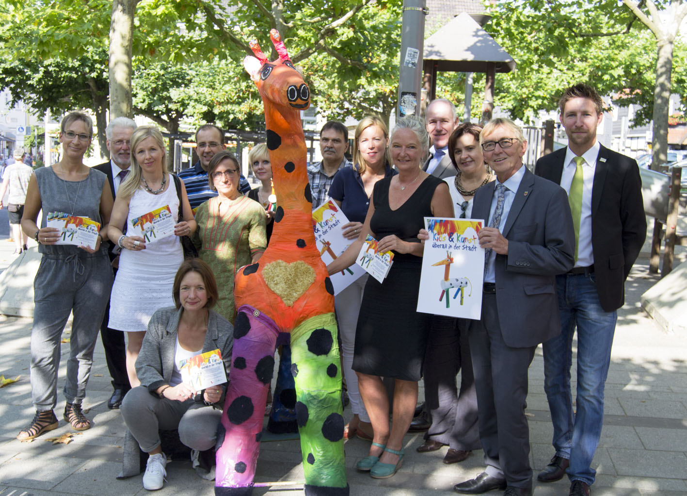 Bürgermeister Dr. Peter Paul Ahrens (2.v.r.) stellte gemeinsam mit Einzelhändlern, Sponsoren und dem Team des Kinder- und Jugendbüros die Aktion „Kids & Kunst überall in der Stadt“ vor.