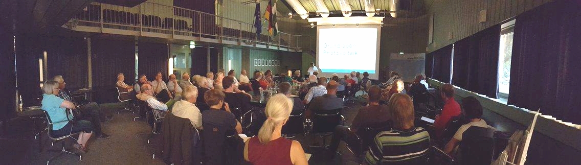 Viele Besucherinnen und Besucher informierten sich beim Vortrag von Wolfgang Müller vom Solar-Informationszentrum Neustadt über die Möglichkeiten Sonnenenergie selbst zu erzeugen und zu verbrauchen (Foto: Stadt Bocholt, Karolina Kowalik)