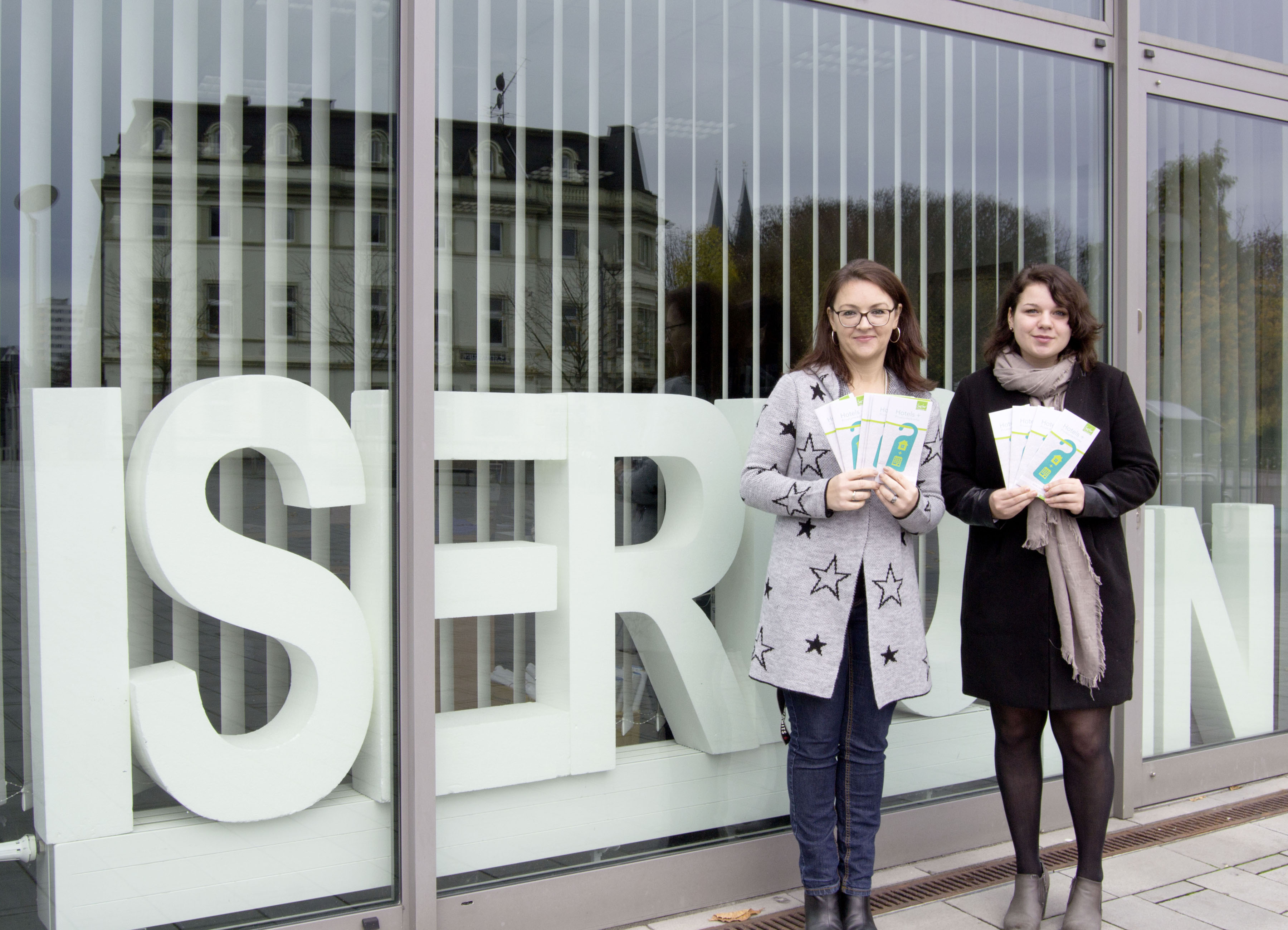 Tanja Götz (l.) von der Stadtinformation und Leonie-Bernice Weber von der Abteilung Stadtwerbung präsentieren die neue Broschüre „Hotels und Ferienwohnungen“.