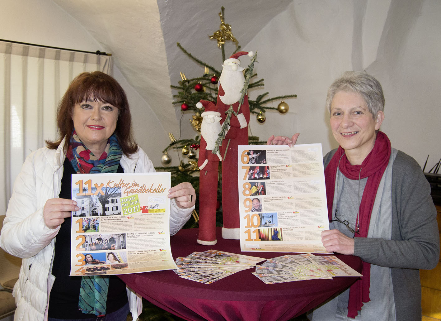 Susanne Manasterni, Pressesprecherin des Fördervereins Haus Letmathe (l.), und Christa Volkmann, Leiterin der Letmather Bücherei-Zweigstelle, laden herzlich ein zum Besuch der Frühjahrs-Veranstaltungen der Reihe „Kultur im Gewölbe".