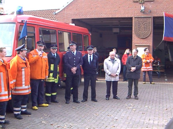 Ansprache zum Abschluss der Übung vor den angetretenen Einsatzkräften