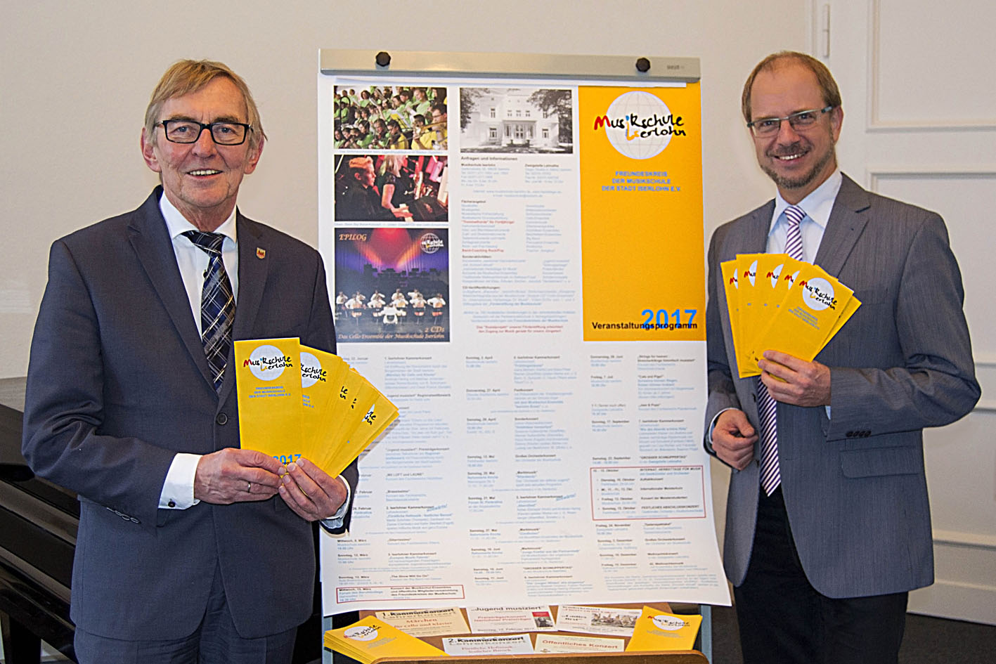 Bürgermeister Dr. Peter Paul Ahrens (l.) und Musikschulleiter Paul Breidenstein stellten das Veranstaltungsprogramm 2017 der Musikschule Iserlohn vor.