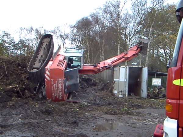 Der umgekippte Bagger