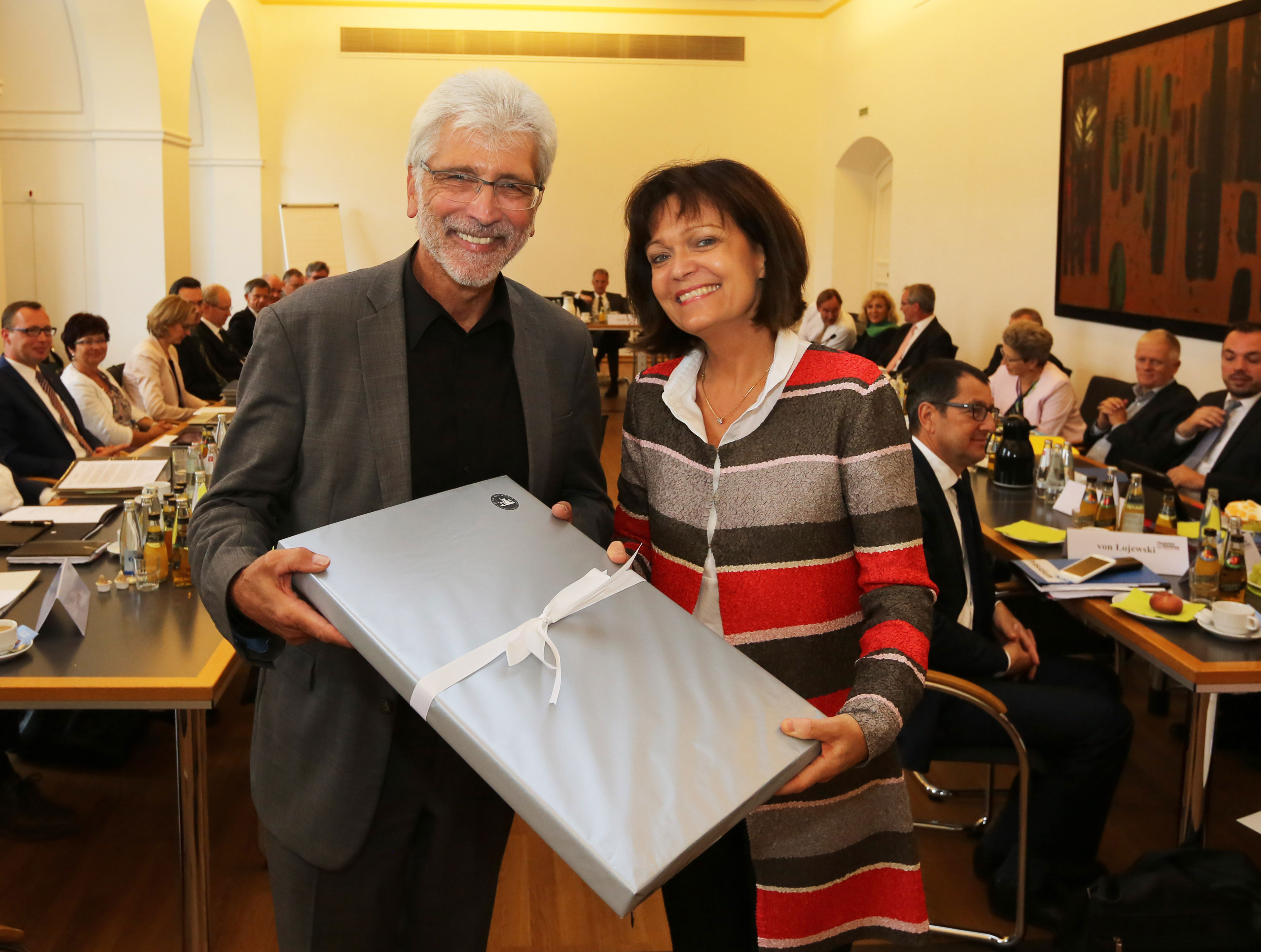Abschiedsgeschenk für Bertram Hilgen zum Dank für seine Arbeit für den Deutschen Städtetag, überreicht von dessen Präsidentin Dr. Eva Lohse.