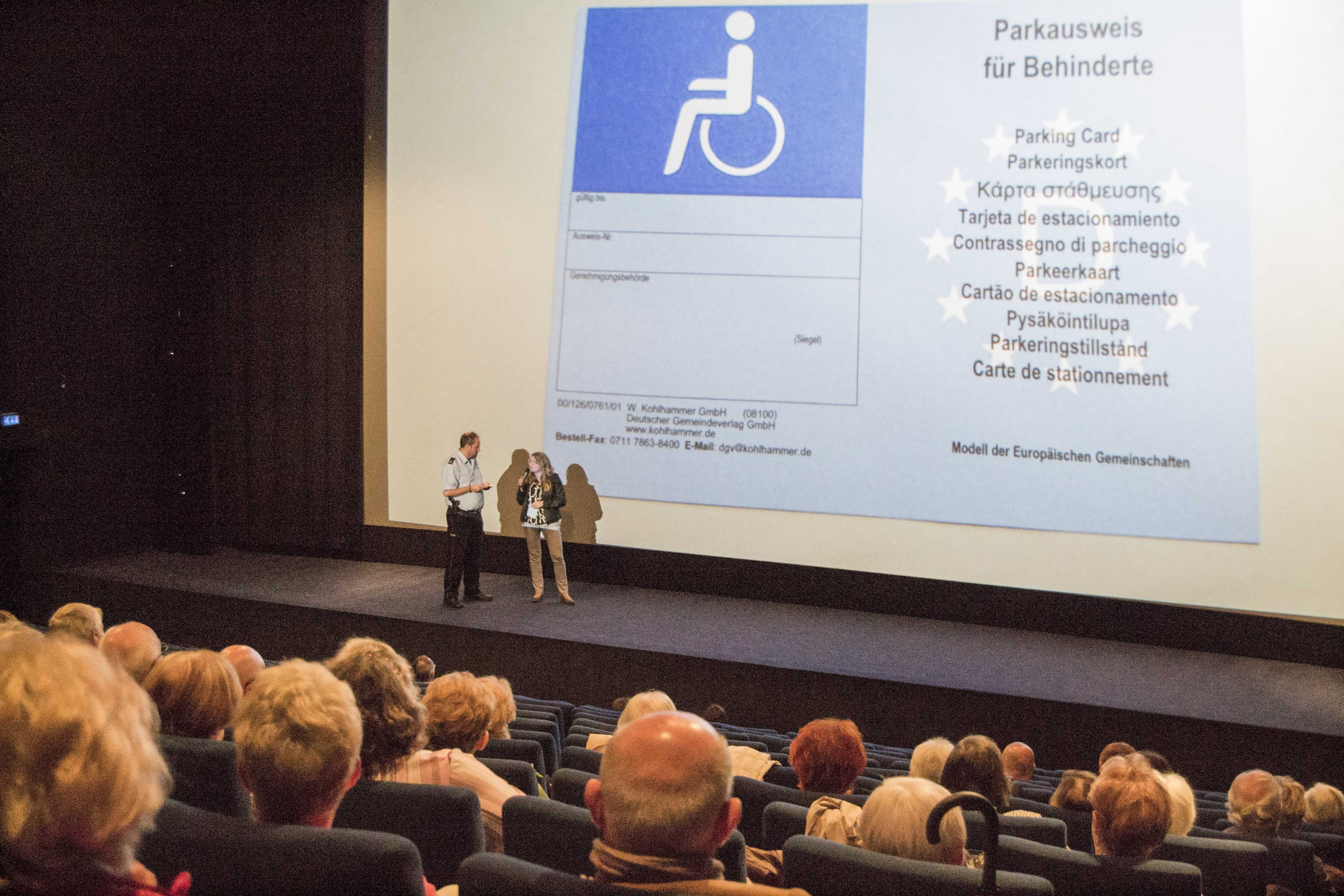 Moderator Polizeioberkommissar Peter Griwalski stellte Angela Schunke zahlreiche Fragen zum Thema Behindertenparkplätze.