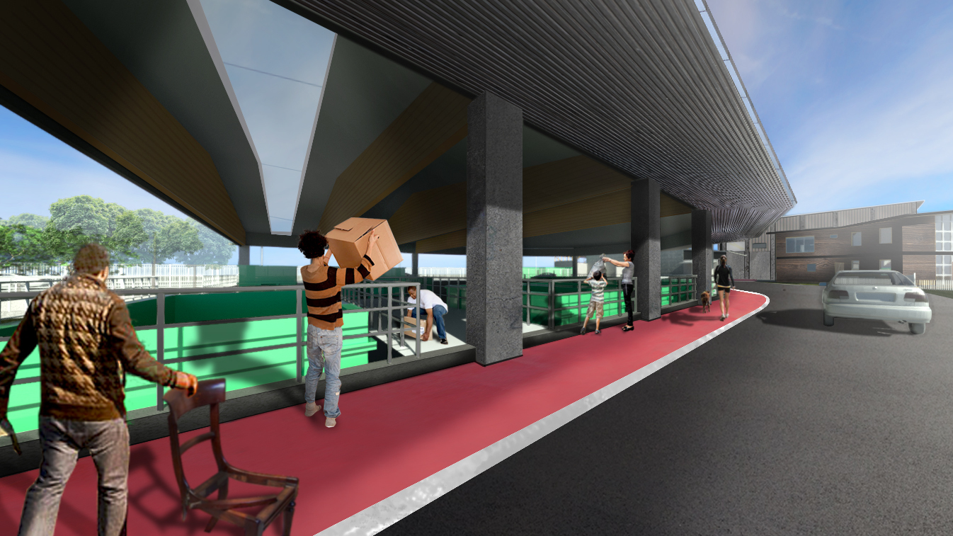 Dreidimensionale Darstellung des Wertstoffzentrums, in dem die Bürger des Kreises Viersen ihre Wertstoffe abladen können. Grafik: Kreis Viersen / Abdruck honorarfrei