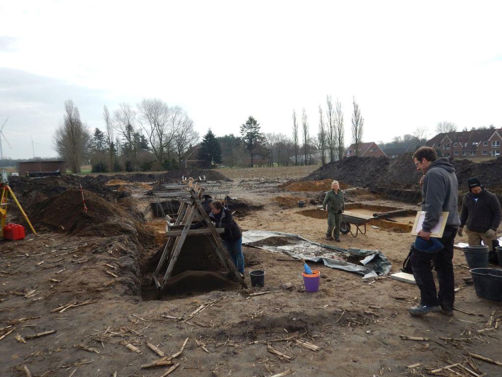 Archäologen haben die Reste frühmittelalterlicher Grubenhäuser in Altenwalde freigelegt. Im Vordergrund die Siebanlage zum Erfassen sehr kleiner Funde.