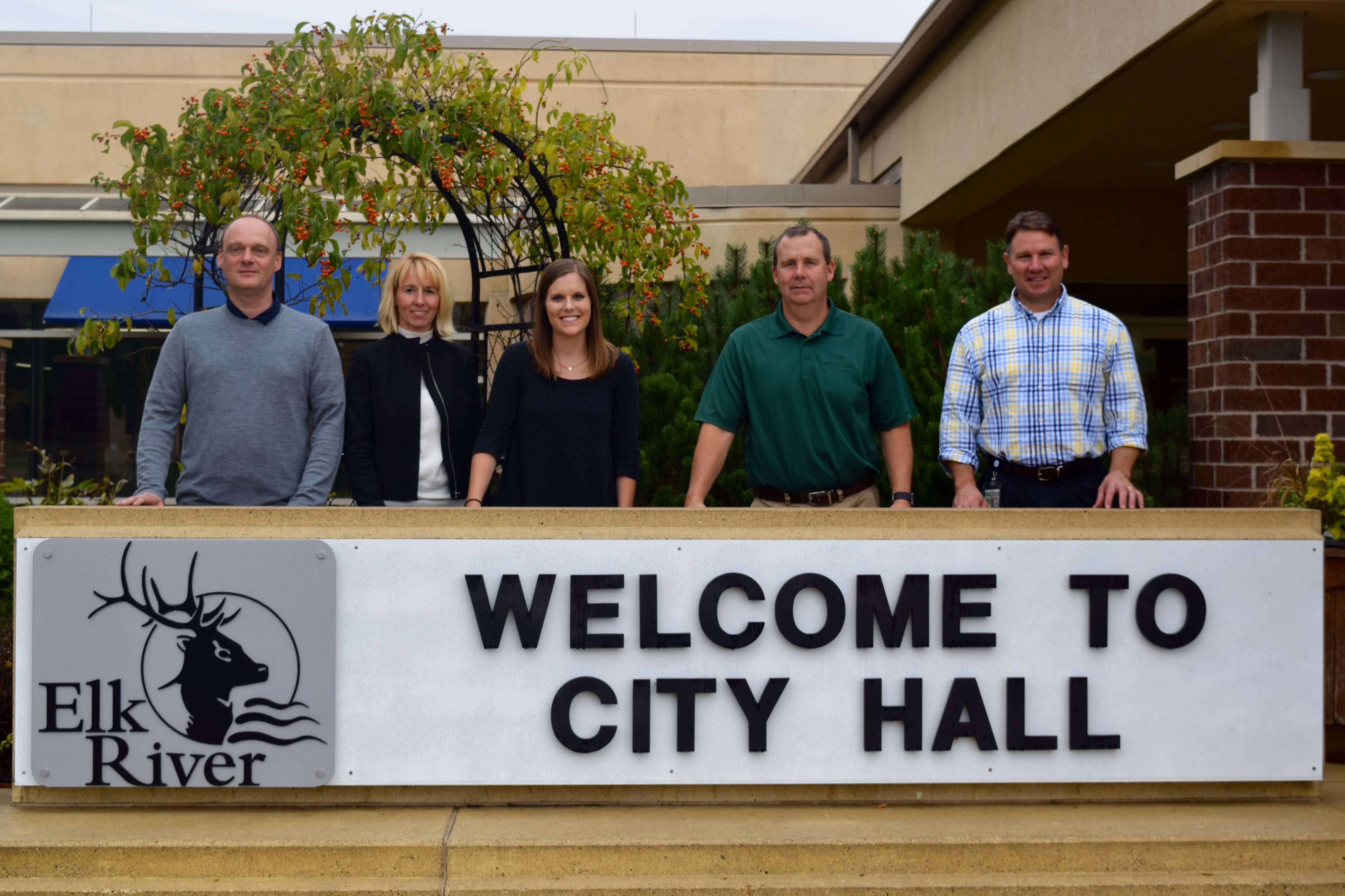 Von links: Thomas Armoneit (Stadtwerke Iserlohn), Ulrike Badziura (Stadt Iserlohn), Amanda Bednar (Elk River Environmental Coordinator), Tom Sagstetter (Elk River Municipal Utilities Conservation Manager) und Cal Portner (Elk River City Administrator). © Sophia Khori / Star News Elk River