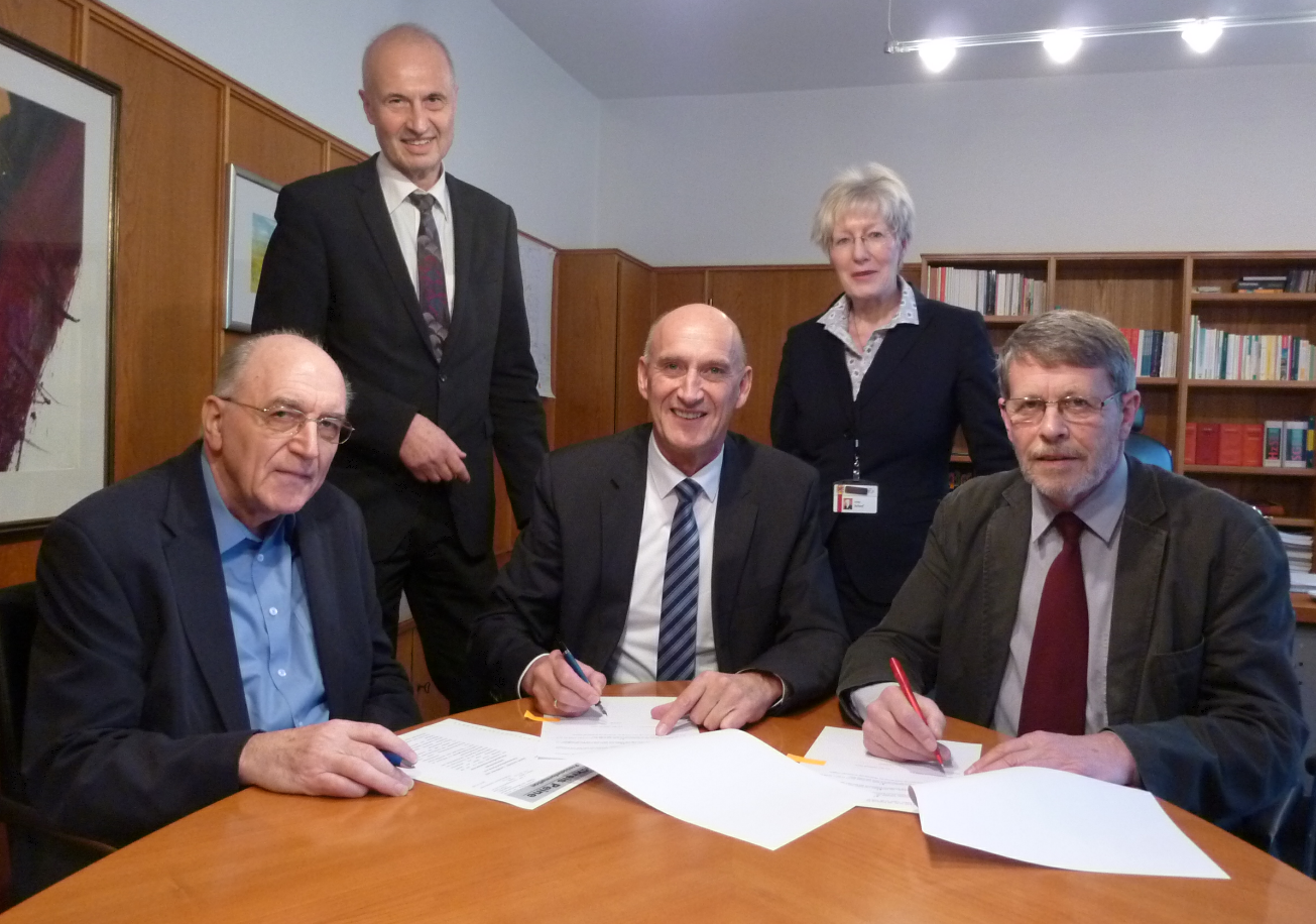 V.l.n.r.: Wolfgang Behrens (stellv. Vorsitzender für Finanzen des Kreissportbundes Peine e.V.), Kreisrat für Soziales Dr. Detlef Buhmann, Landrat Franz Einhaus, Ulrike Scharf (Leiterin des Jobcenters Landkreis Peine), Wilhelm Laaf (Vorsitzender des Kreissportbundes Peine e.V.)