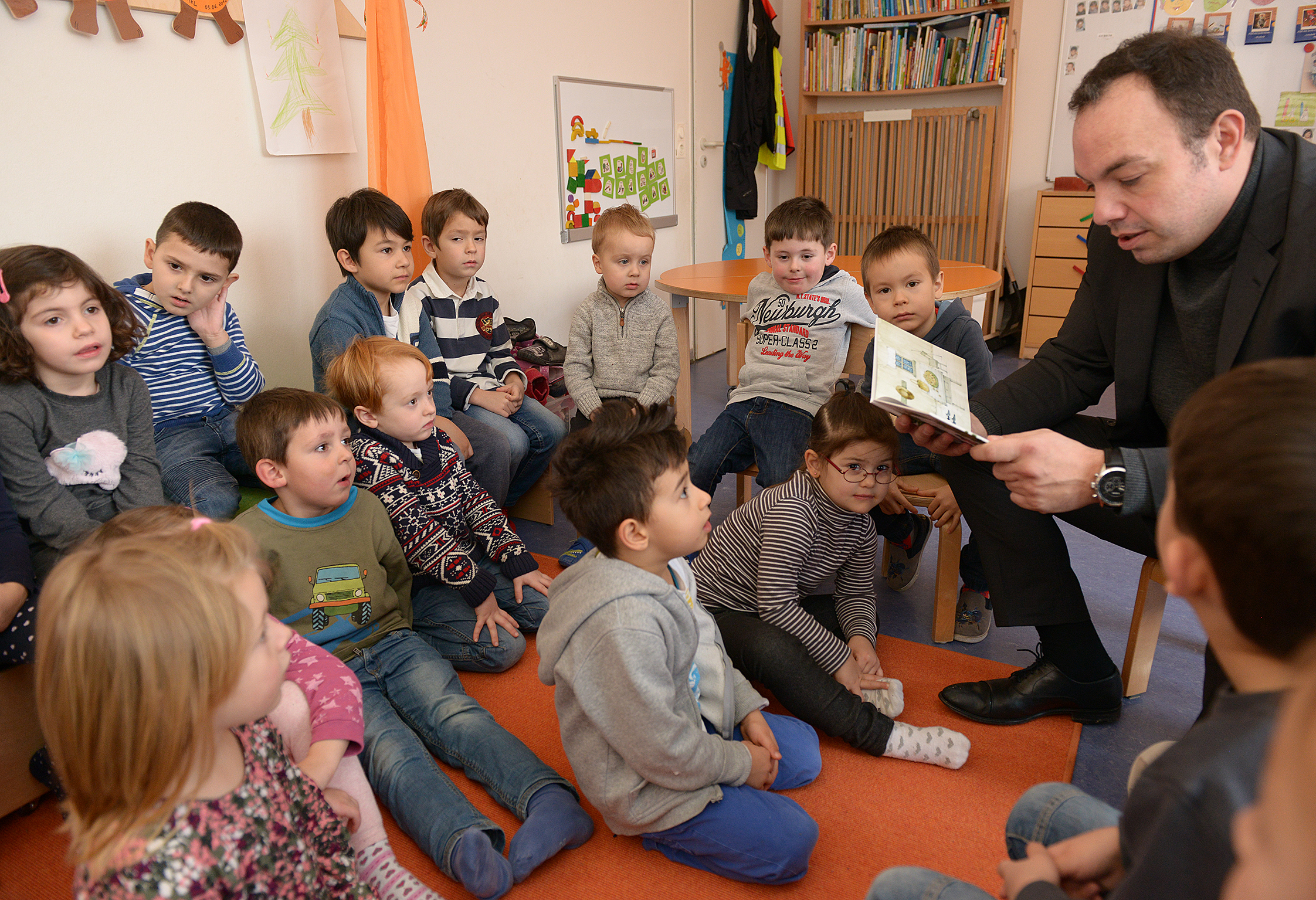 Oberbürgermeister Christian Geselle liest in der Kita Niederzwehren weihnachtliche Geschichten vor. Foto: Stadt Kassel/Soremski