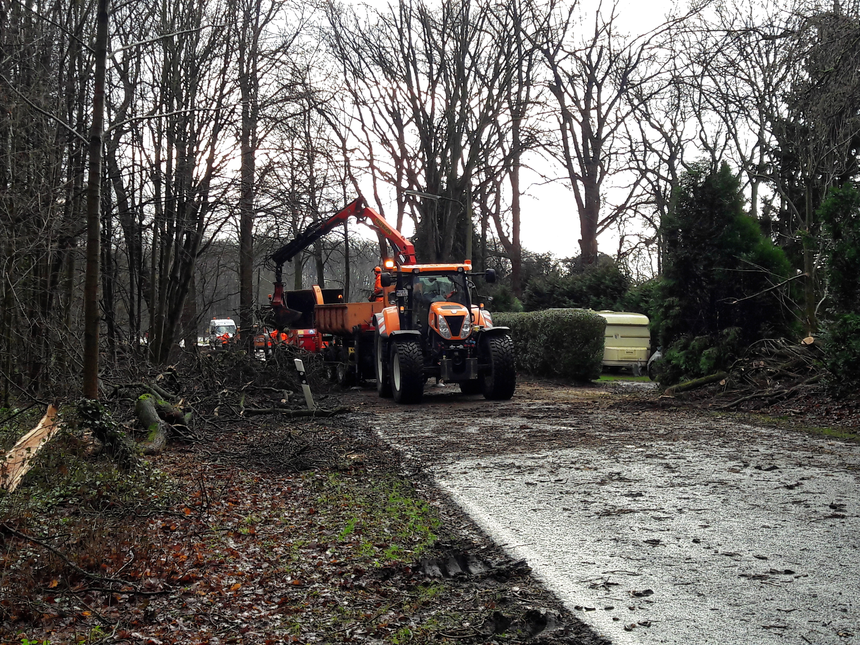 Die Mitarbeiter des Betriebshofes sind nach dem Sturm Friederike mit den Aufräumarbeiten beschäftigt. Foto: Kreis Viersen / Abdruck honorarfrei
