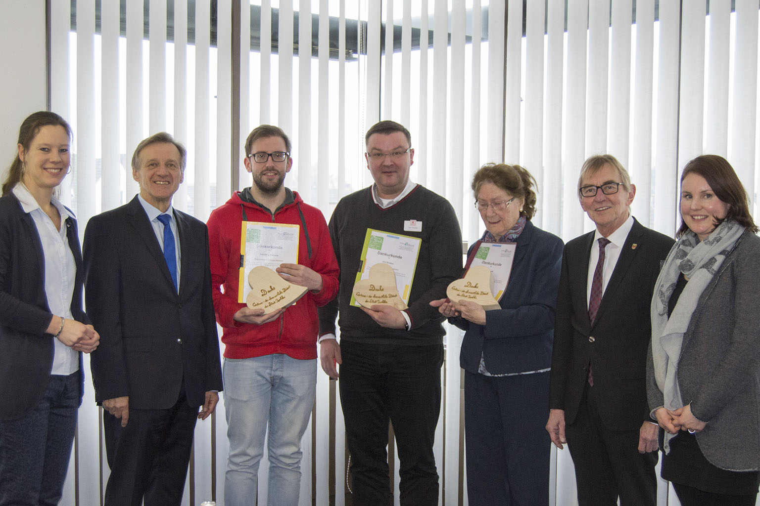 Dank an die Spender für ihr Engagement für den ehrenamtlichen Dienst (v.l.): Continue-Koordinatorin Nicole Behlau, Ressortleiter Jochen Köhnke, Christopher Hömberg, Dirk Breiken, Rita Heydt, Bürgermeister Dr. Peter Paul Ahrens und Continue-Koordinatorin Anna-Lena Wolfsheimer.