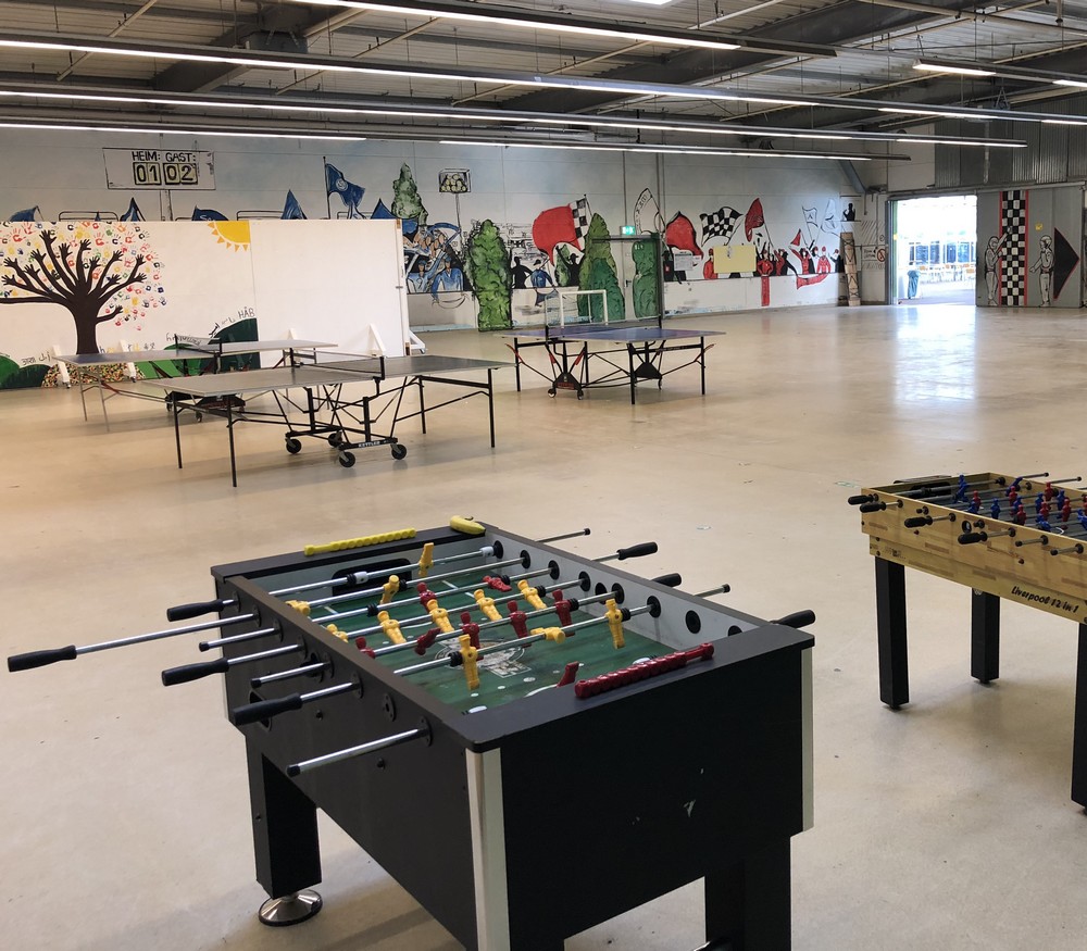 Blick in Aufenthaltsraum für Sport und Freizeit, zugleich auch Reservefläche für plötzliche Krisensituationen