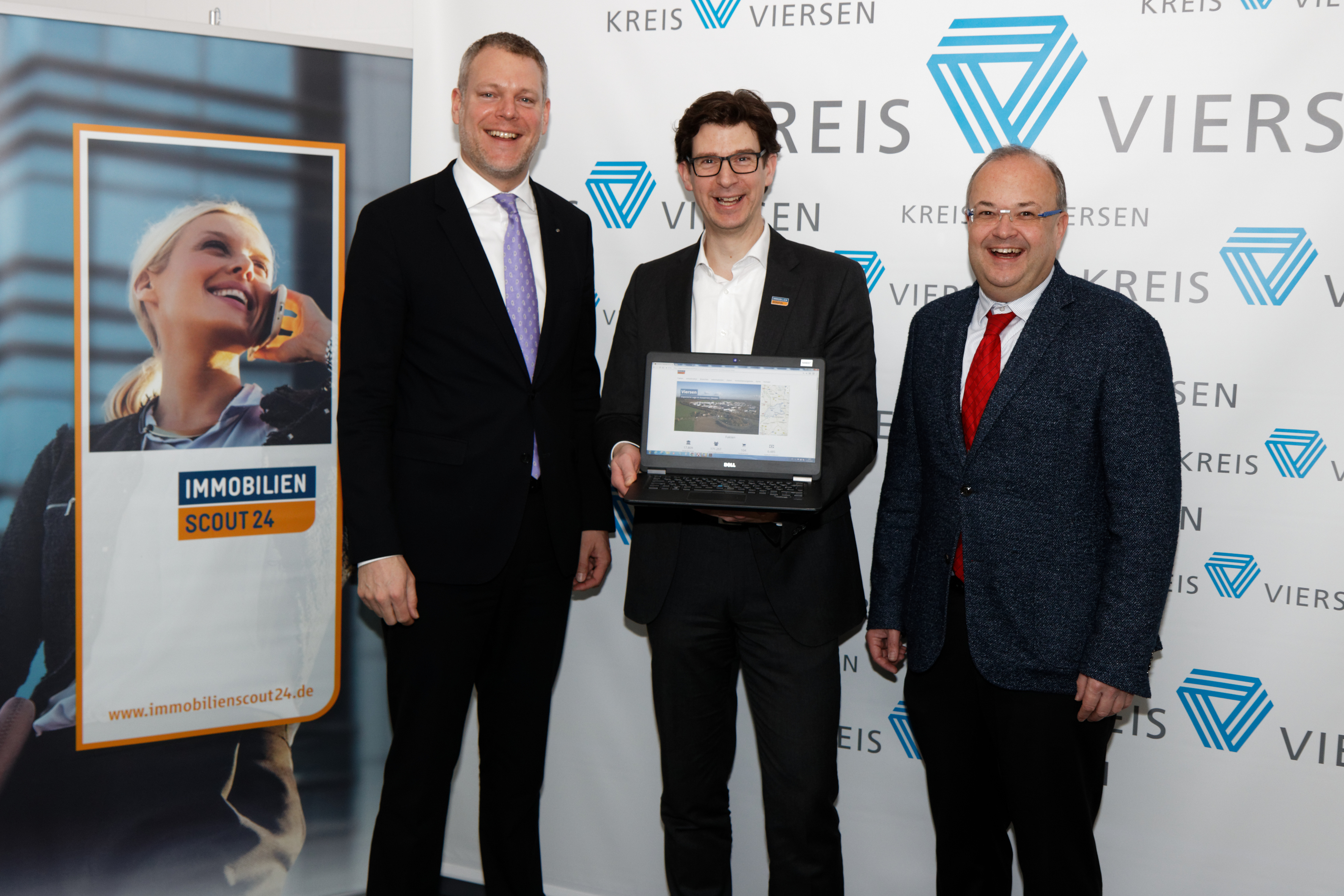 Präsentieren den Kreis Viersen auf Immobilienscout (v.l.): Landrat Dr. Andreas Coenen, Dirk Kracht von ImmobilienScout24 und WFG-Geschäftsführer Dr. Thomas Jablonski. Foto: Kreis Viersen / Abdruck honorarfrei