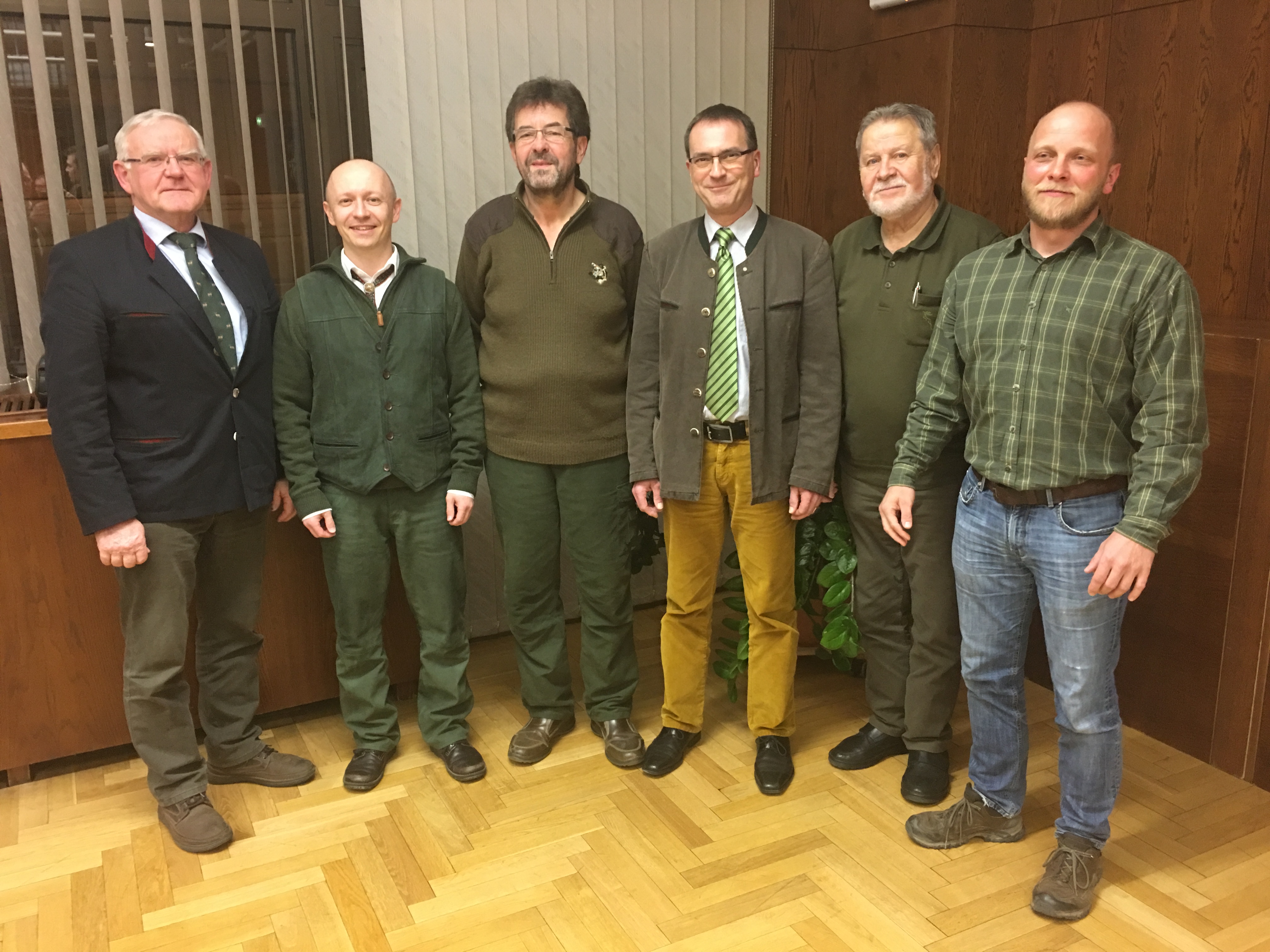 v. l.: Dr. Hans-Heinrich Jordan (Präsident des Landesjagdverbandes), Dr. Ulrich Seydlitz, Peter Baake, Dr. Horst Nopens, Eberhard Hellmuth, Jan Driesnack (Vorsitzender der Kreisjägerschaft).
