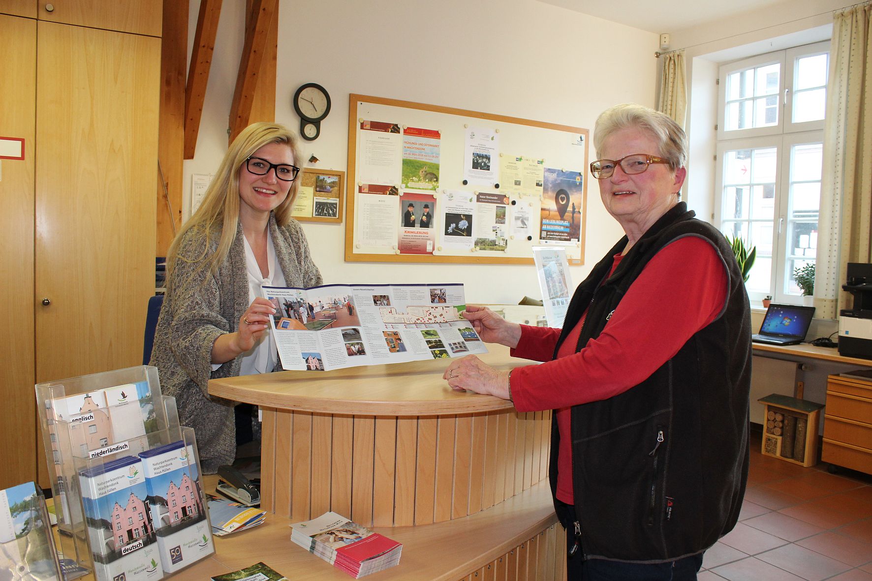Eine ehrenamtliche Helferin berät eine Besucherin und gibt Tipps zum Naturpark Schwalm-Nette. Foto: Naturpark Schwalm-Nette / Abdruck honorarfrei