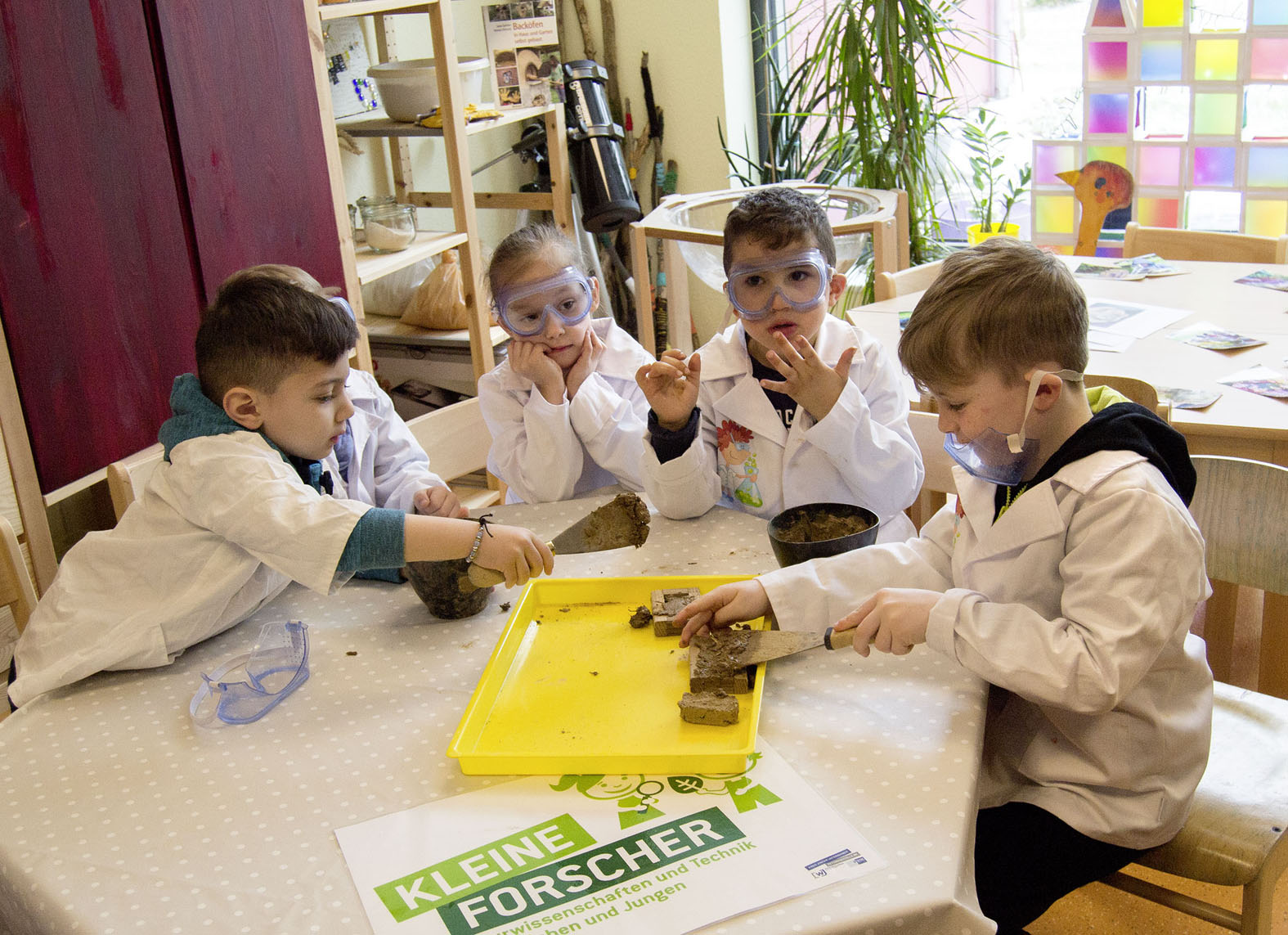 Kinder der städtischen Kita „Schloss Einstein“ stellten ihr Lehmbauprojekt vor, das beim bundesweiten Wettbewerb „Forschergeist 2018“ den NRW-Landessieg errungen hat.