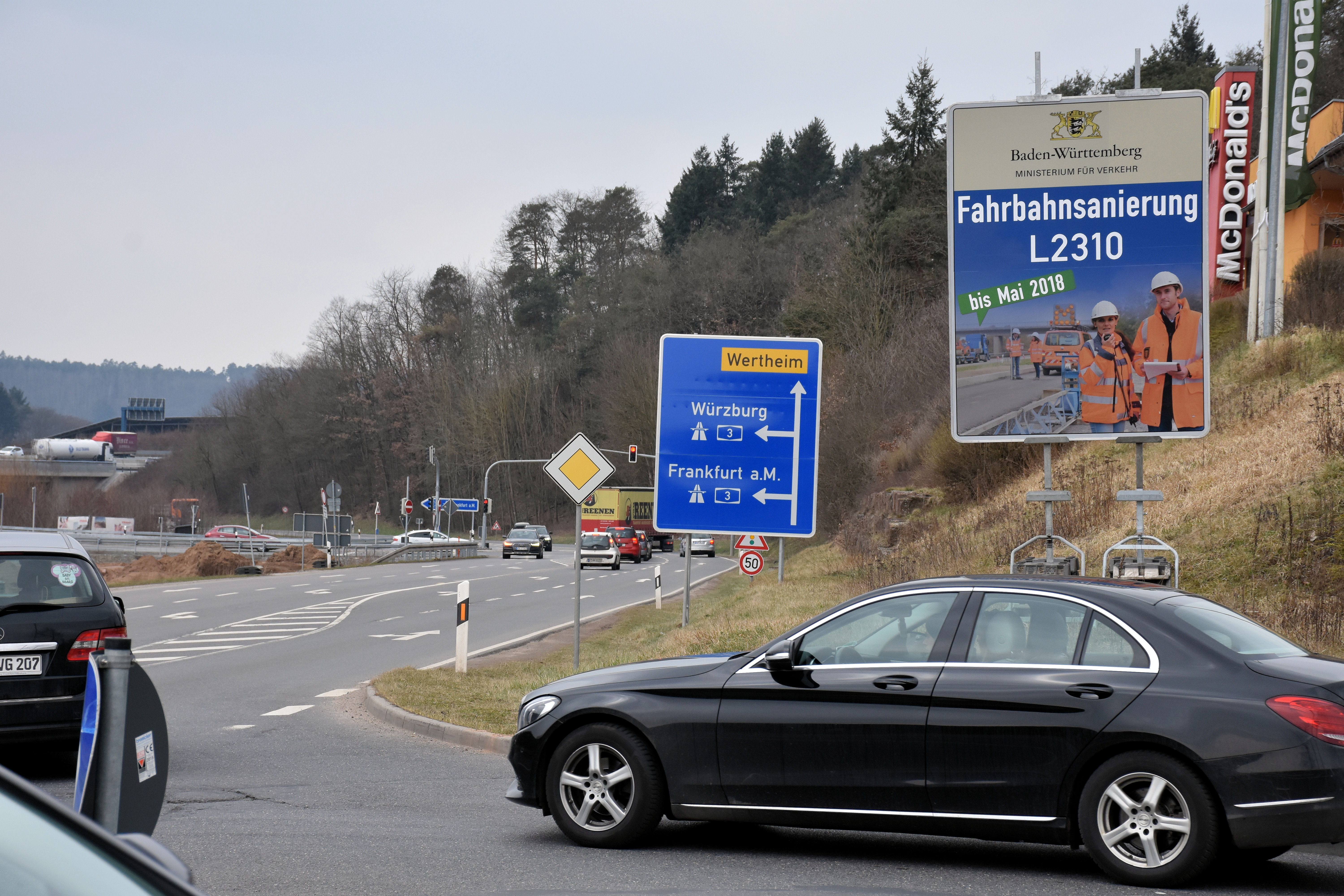 Gesperrt wird die Strecke zwischen der Zufahrt zum Autohof und der Zufahrt zum Gewerbegebiet Almosenberg (Bild). Foto: Stadt Wertheim