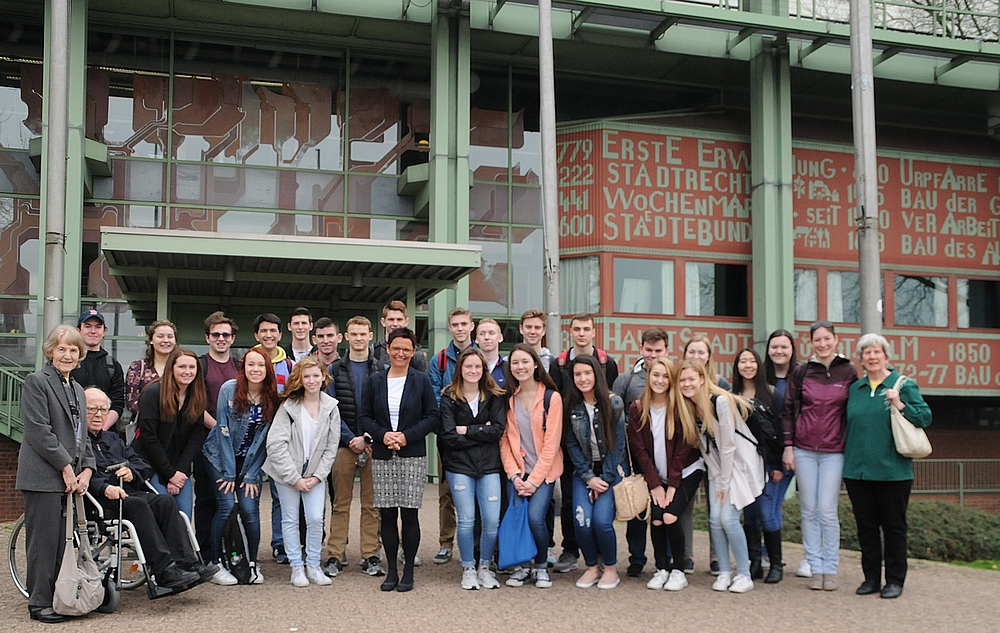 Schüler der Canton High School aus Massachusetts (USA) beim offiziellen Empfang durch die stv. Bürgermeisterin Elisabeth Kroesen im Rathaus Bocholt. (Foto: Stadt Bocholt)