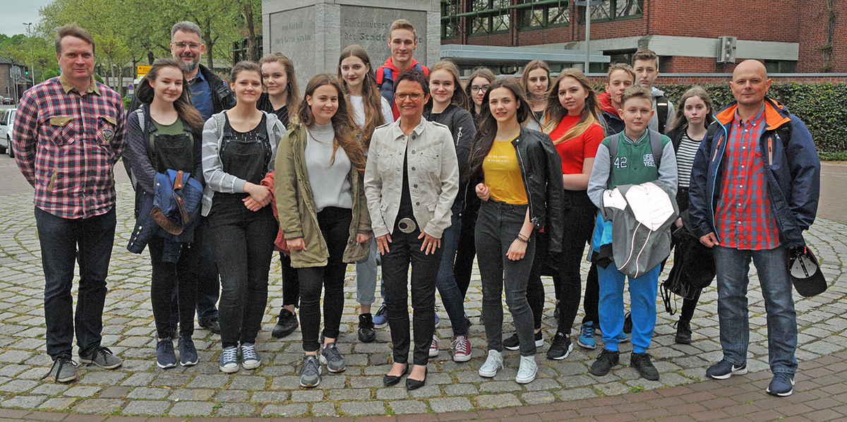Am 24. April 2018 empfing Bocholts erste stellvertretende Bürgermeisterin Elisabeth Kroesen eine Schülergruppe aus dem polnischen Kobierzyce, die Gast des Euregio-Gymnasiums ist
