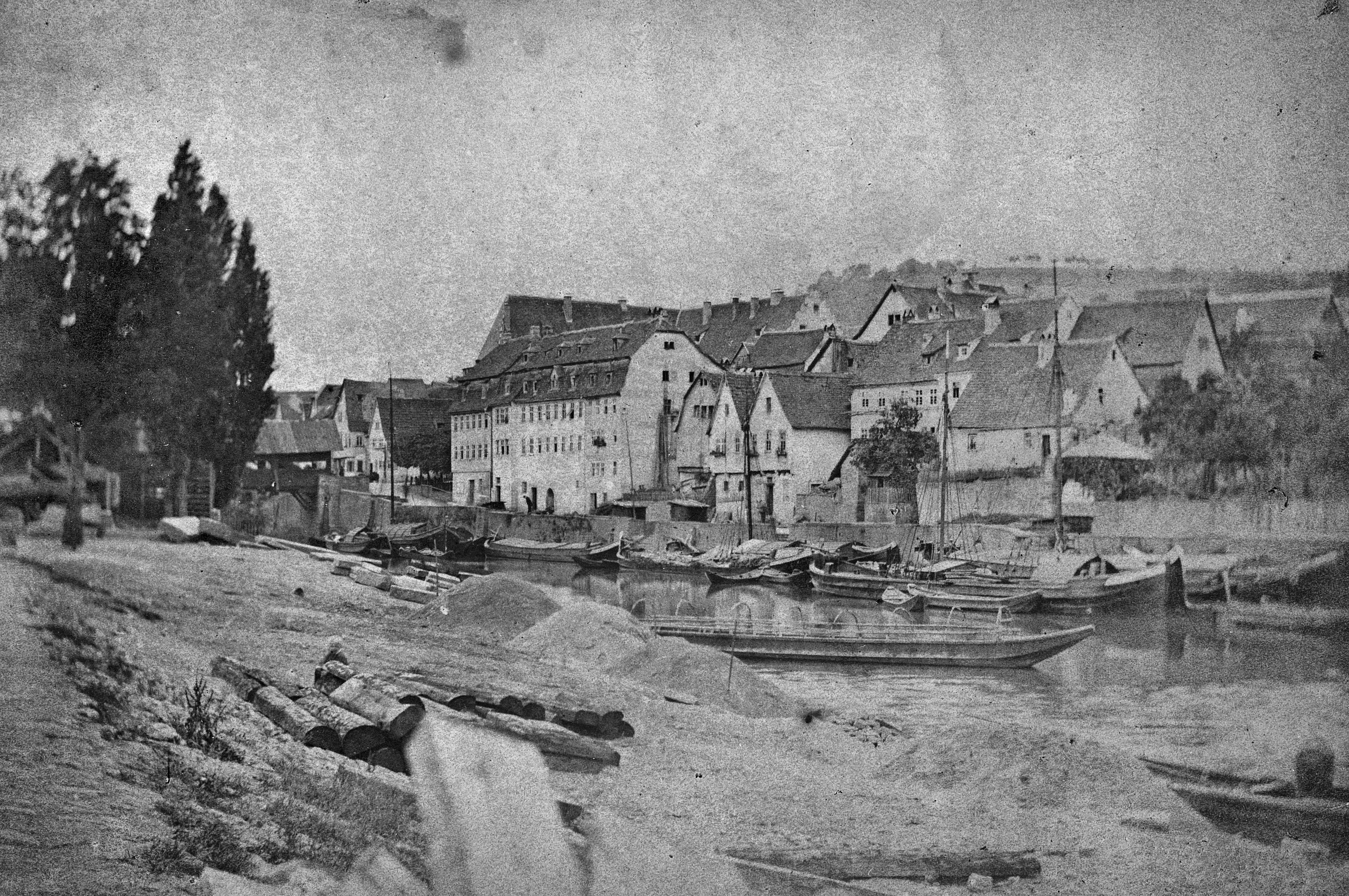 Das Tauberufer vor dem Bahnbau, um 1865, vermutlich von Michael Seher, Foto: Grafschaftsmuseum, Repro Kurt Bauer