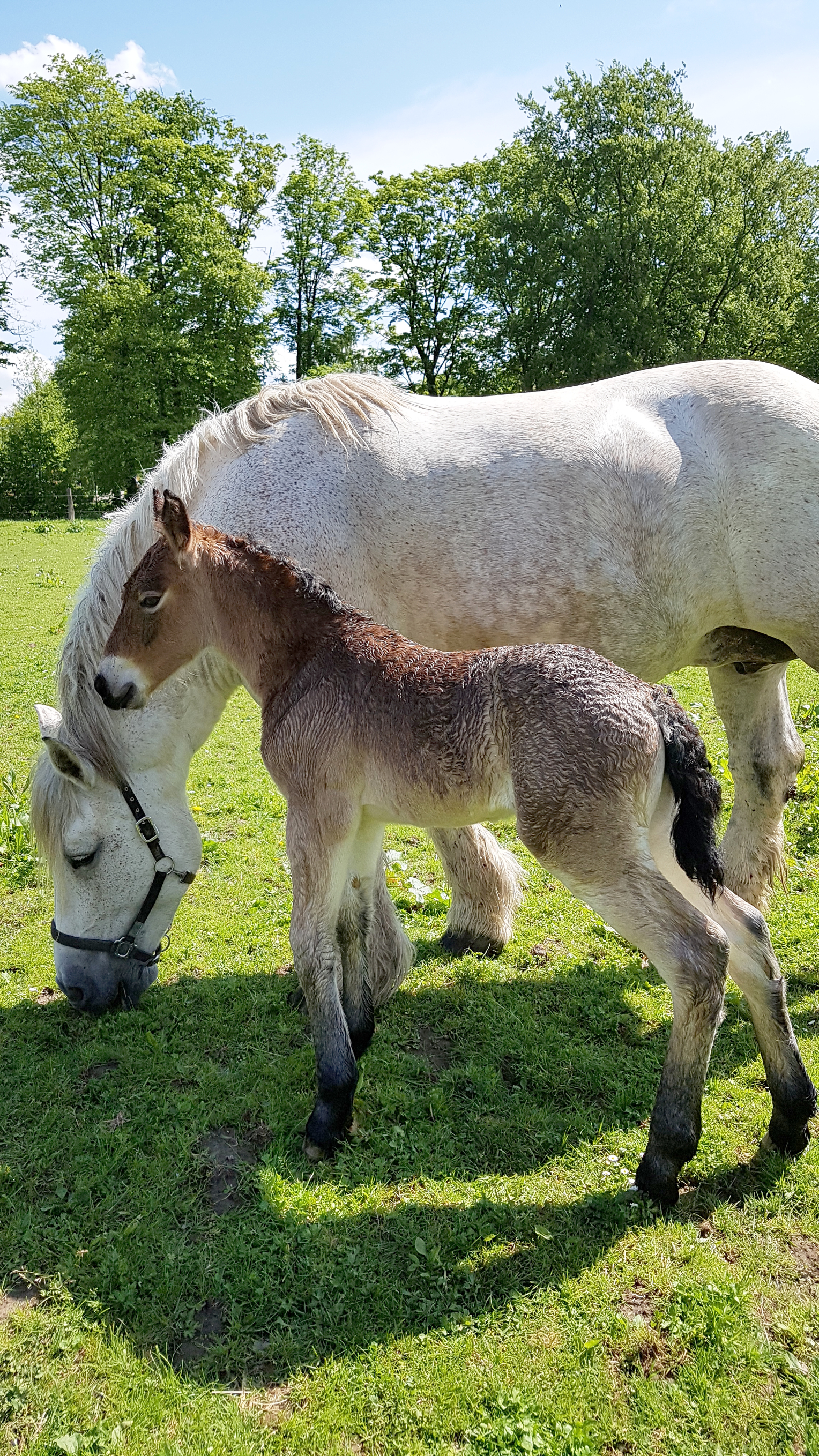 Mutter Nora und ihr Fohlen sind wohlauf. Die Besucher des Niederrheinischen Freilichtmuseums können sich an der Namenssuche beteiligen. Foto: Niederrheinisches Freilichtmuseum / Abdruck honorarfrei