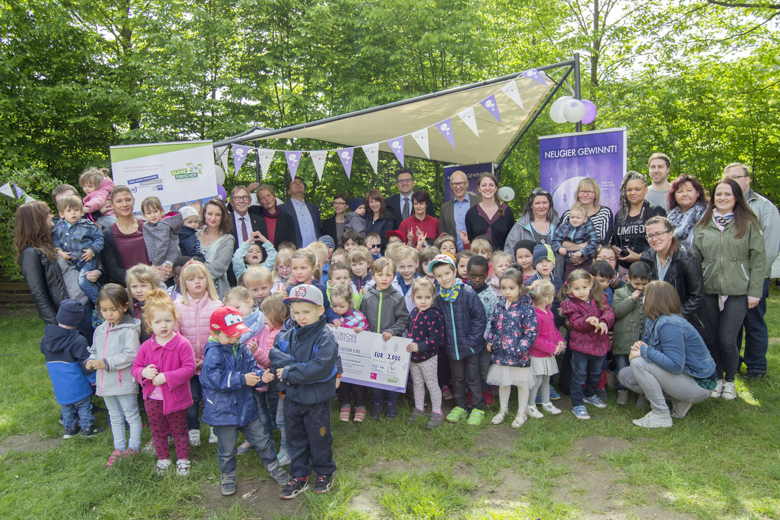 Große Freude herrschte in der Kita „Schloss Einstein“, als die Trophäe beim NRW-Landessieg „Forschergeist“ offiziell übergeben wurde. Die „kleinen Forscher“ und das Team der Kita sind nun ganz gespannt, ob sie im Juni auch unter den Bundessiegern sein werden.