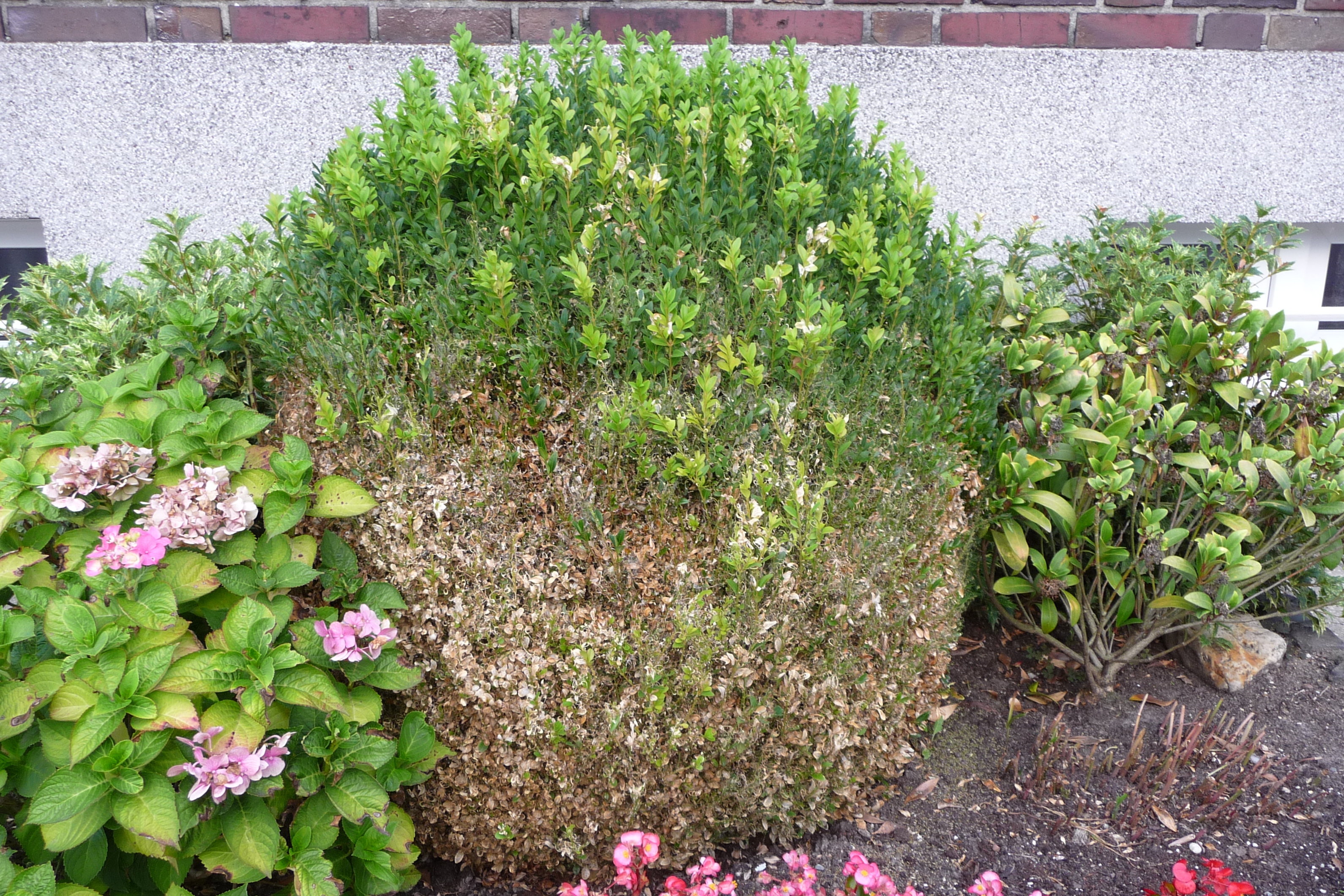 Diesem Buchsbaum haben die Raupen des Buchsbaumzünslers zugesetzt. Foto: Kreis Viersen / Abdruck honorarfrei