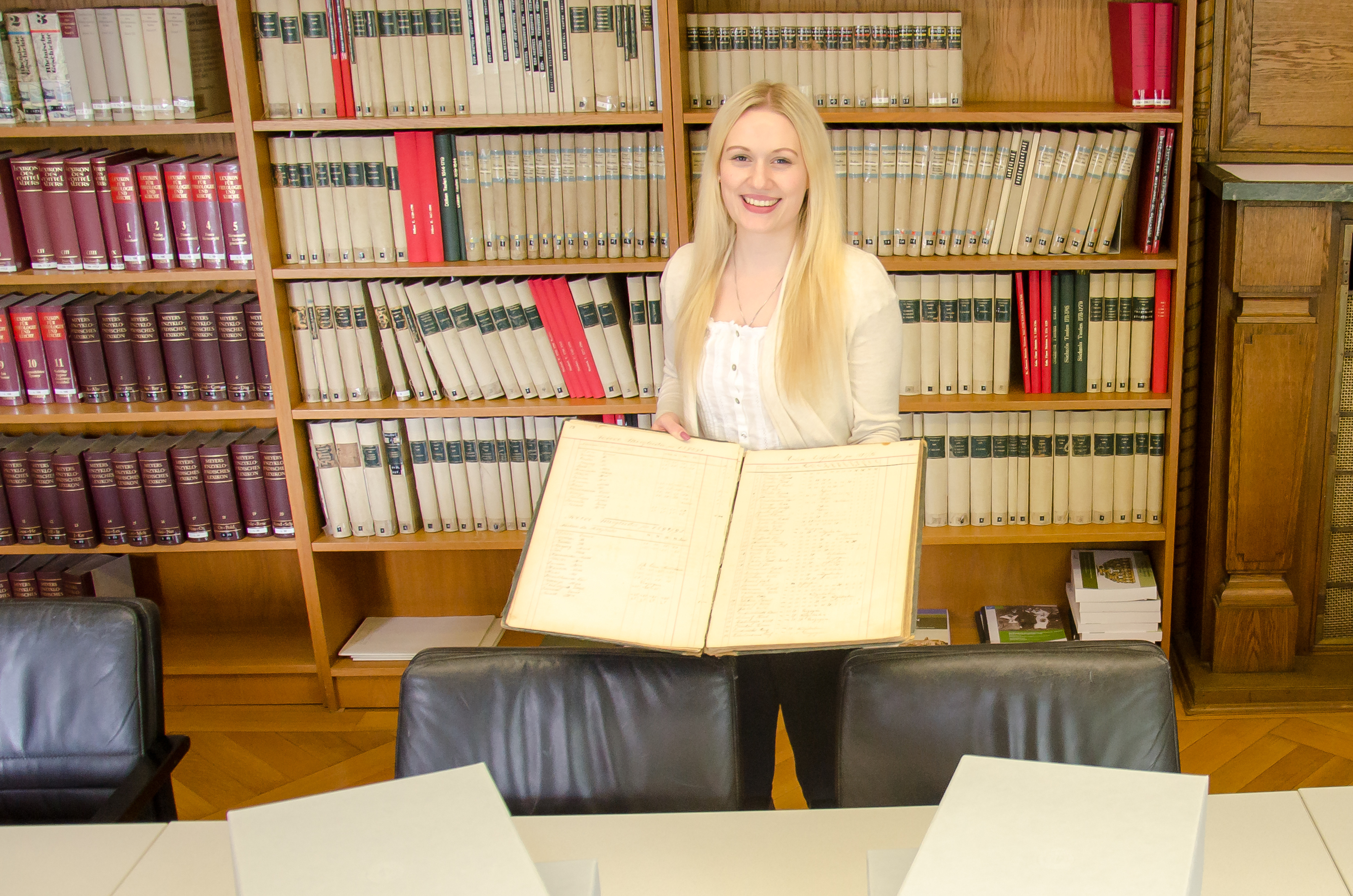 Auszubildende Julia Peters hat das Vereinsarchiv des TuS Waldniel für das Kreisarchiv erschlossen (verzeichnet). Foto: Kreis Viersen - Abdruck honorarfrei
