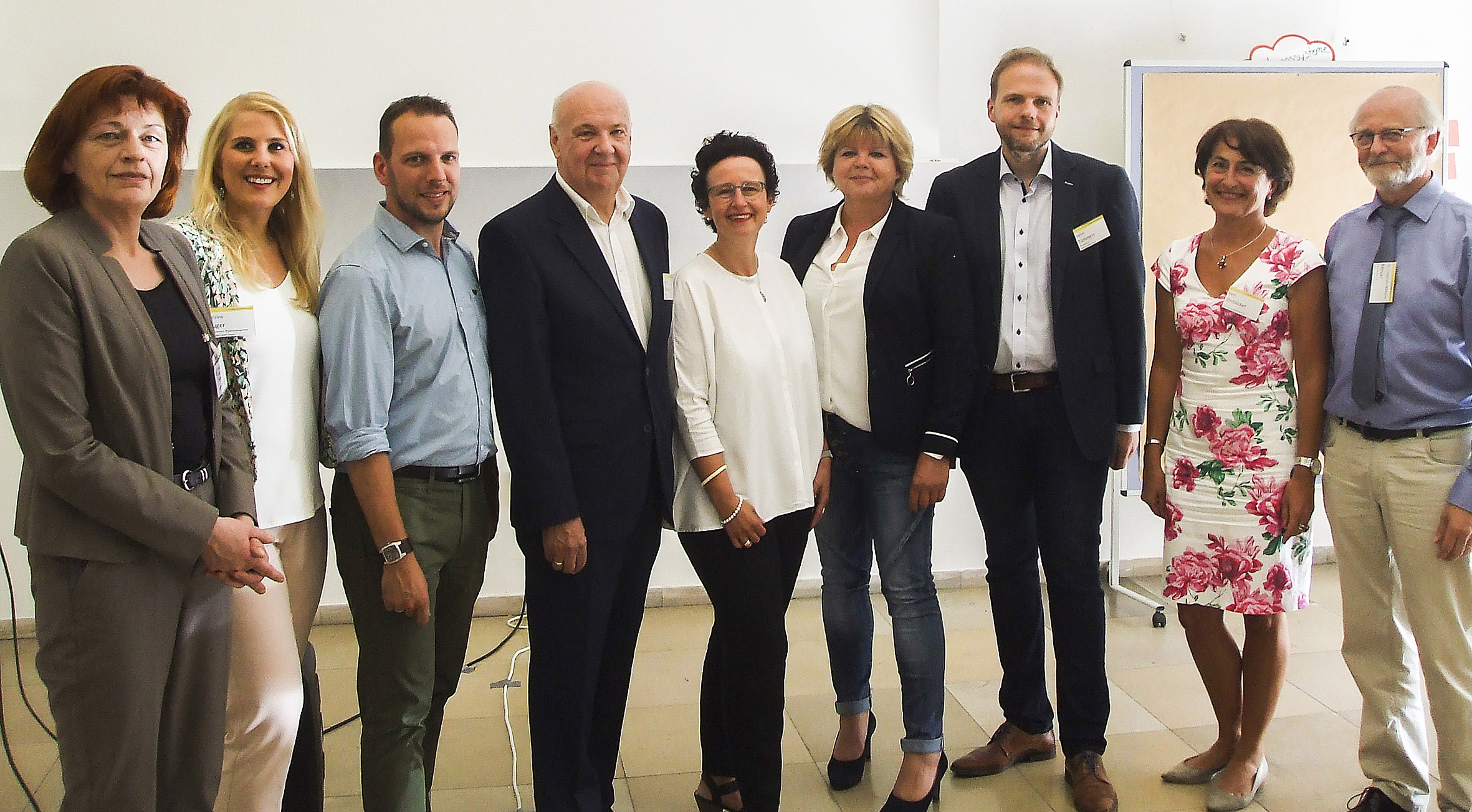 Auf dem Foto v.l.n.r.: Frau Schillner (Projektleitung Bildungsbegleitung im Kommunalen Jobcenter), Frau Kluger (Fachberatung Jugendzentren), Herr Marr (Schulsozialarbeiter), Herr Lindemann (Vorsitzender des Schulausschusses), Frau Dr. Obszerninks (Dezernentin für Bildung und Kultur), Frau Hosbach (Untere Schulaufsicht für die Hauptschulen), Herr Tümmers (Schulleitung Martin-Luther-Schule), Frau Diebäcker (Leitung des Amtes für schulische Bildung), Herr Dr. Meyer (Gutachter)