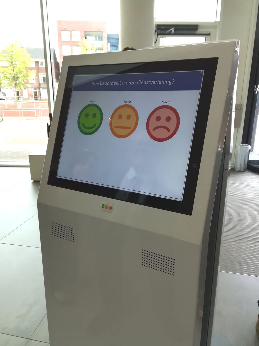 Das Bürgerbüro in Almelo fragt seine Kunden nach ihrer Zufriedenheit. An einem Terminal können Bürger Termine buchen und am Ende ihre Bewertung für den Service abgeben.