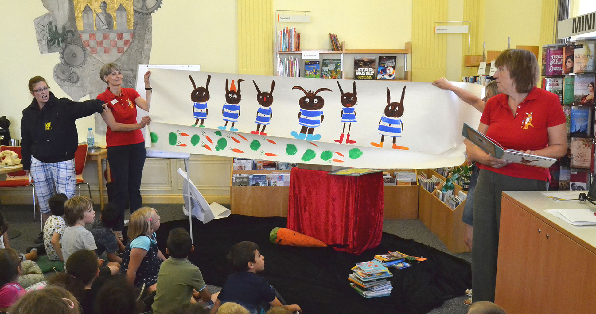 Bei der Interaktiven Lesung war die Mithilfe der Kinder der Südschule bei der Suche nach dem Bücherdieb gefragt.