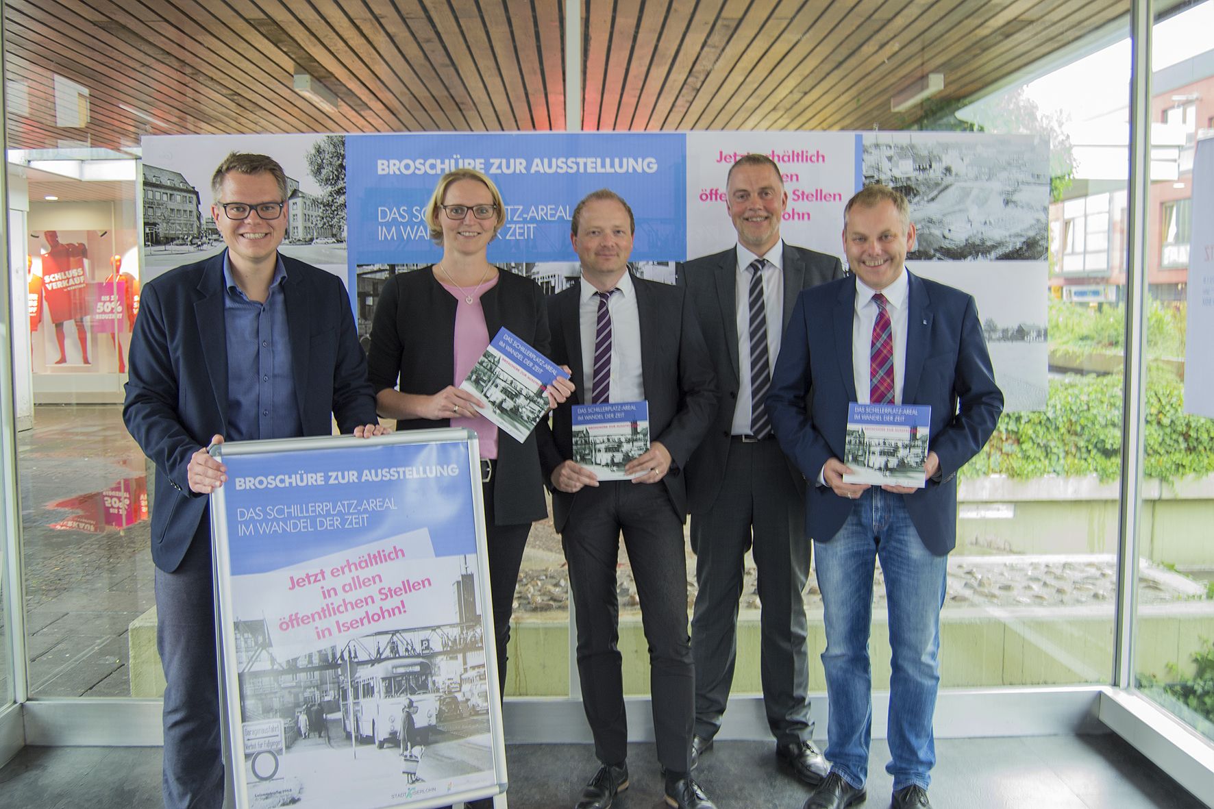 Stellten die Broschüre vor: Stadtbaurat und bisheriger Geschäftsführer der Schillerplatz GmbH Mike-Sebastian Janke, Dr. Dagmar Lehmann, Volker Keitmann, stellvertr. Aufsichtsratsvorsitzender der Schillerplatz GmbH, Olaf Pestl, IGW-Geschäftsführer und neuer Geschäftsführer der Schillerplatz GmbH, sowie Michael Schmitt, Aufsichtsratsvorsitzender der Schillerplatz GmbH (von links).