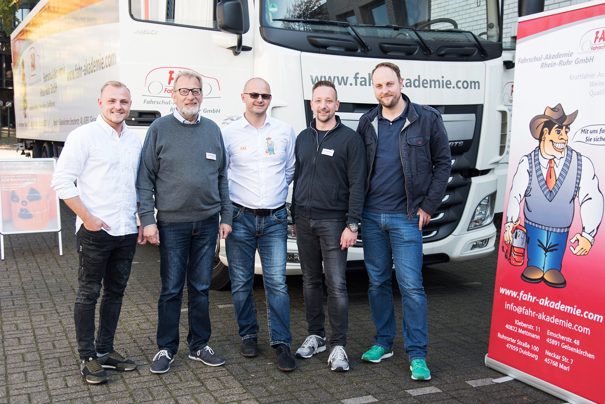 Sie freuen sich über eine gute Zusammenarbeit und hoffen auf viele Bewerber: Rolf Lassak (2.v.l.) und Thorsten Lercher (2.v.r.) vom Vermittlungsservice des Jobcenters Kreis Recklinghausen, der Vorstandsvorsitzende der Bosna AG Suad Durakovic (Mitte) sowie Sebastian Gottowik (r.) und Maurice Auschner (l.) vom Unternehmen Elbfrost in Marl.