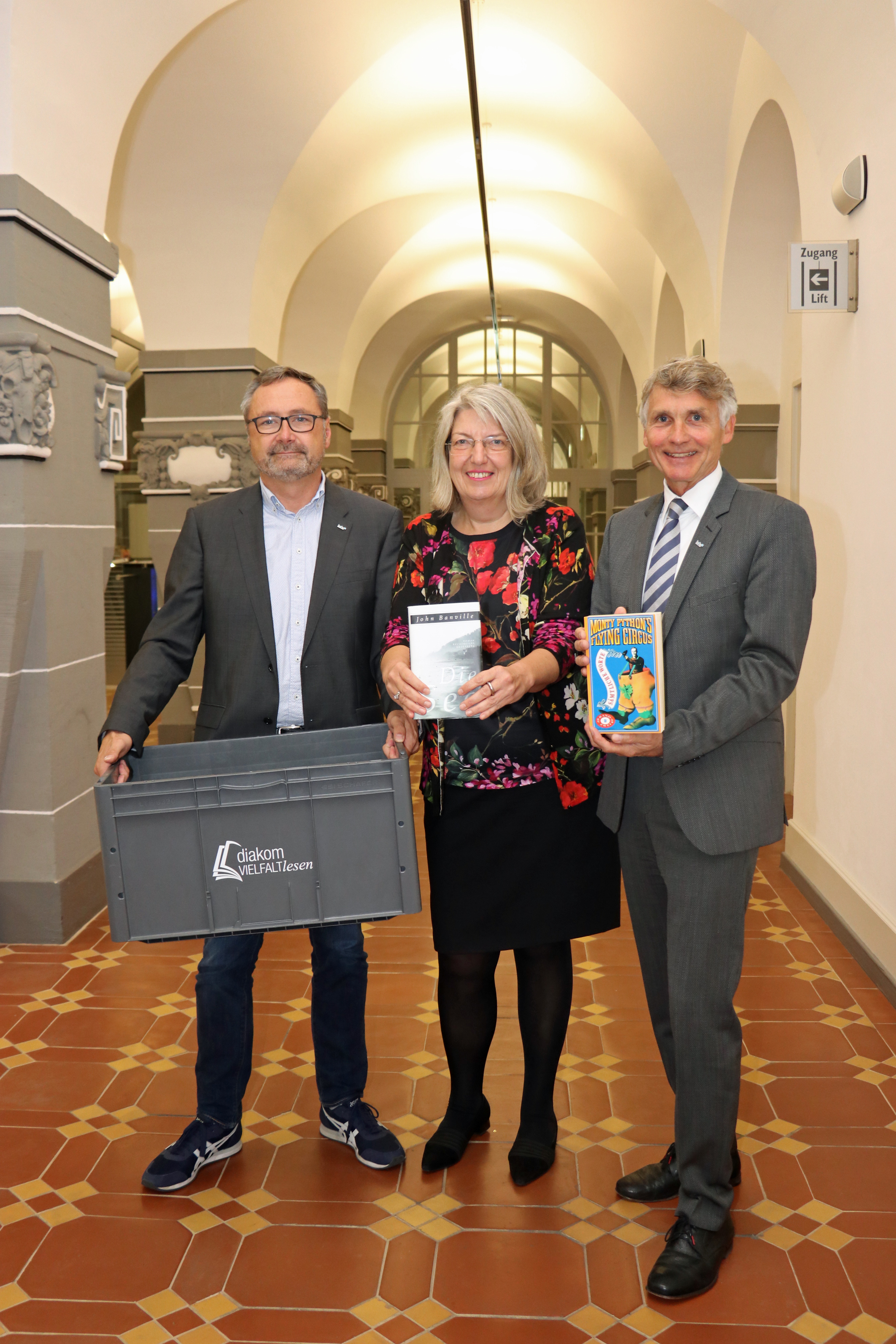 Bürgermeisterin und Sozialdezernentin Ilona Friedrich (Mitte) stellte das Projekt jetzt gemeinsam mit dem Vorsitzen des Vorstands der bdks, Joachim Bertelmann (rechts), sowie Werkstattleiter Markus Siebert (links) vor.