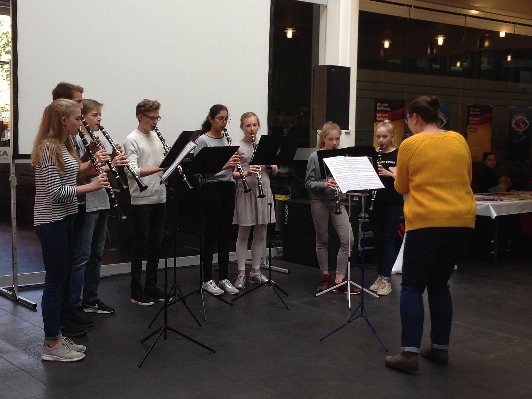 Der Klarinettenchor der Kreismusikschule Viersen spielt unter Leitung von Jasmin Garlik beim Konzert. Foto: Kreis Viersen / Abdruck honorarfrei