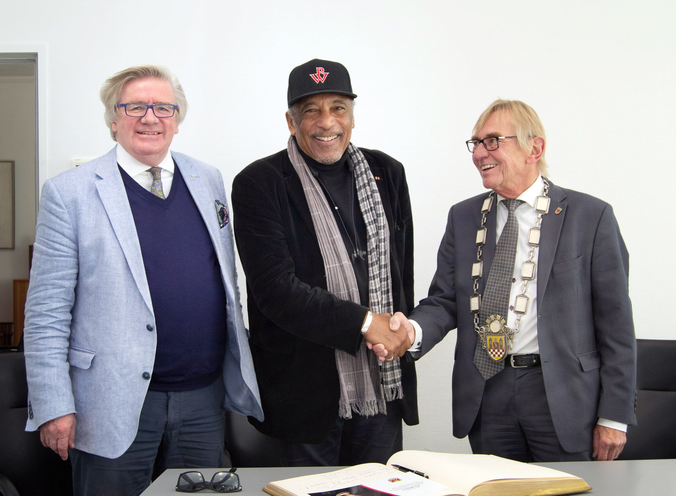 Theaterdirektor Johannes Josef Jostmann, Ron Williams und Bürgermeister Dr. Peter Paul Ahrens (v. links) führten ein angeregtes Gespräch im Iserlohner Rathaus.