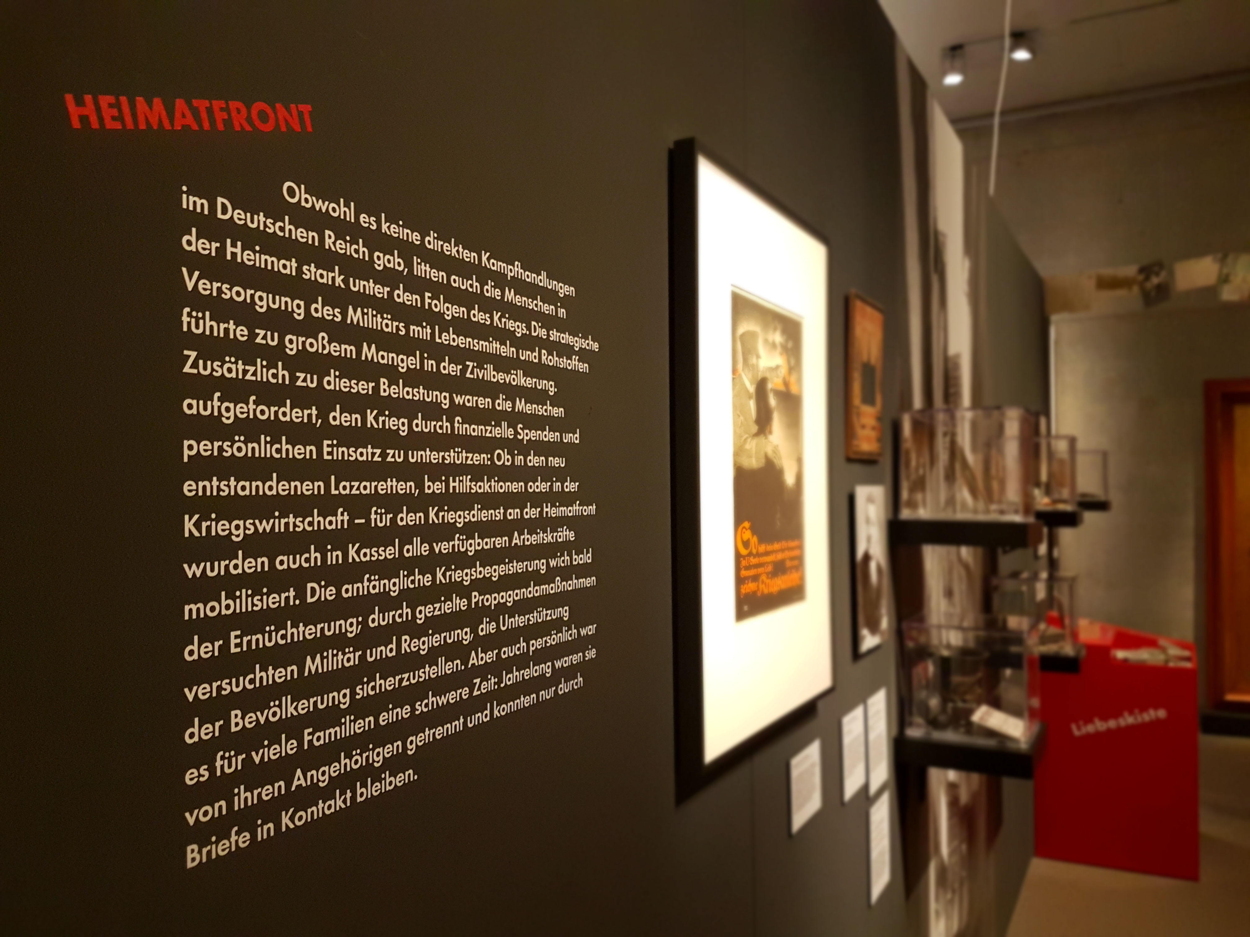 Das Bild zeigt einen Teil der Ausstellung im Stadtmuseum, in dem das Thema Heimatfront näher beleuchtet wird.