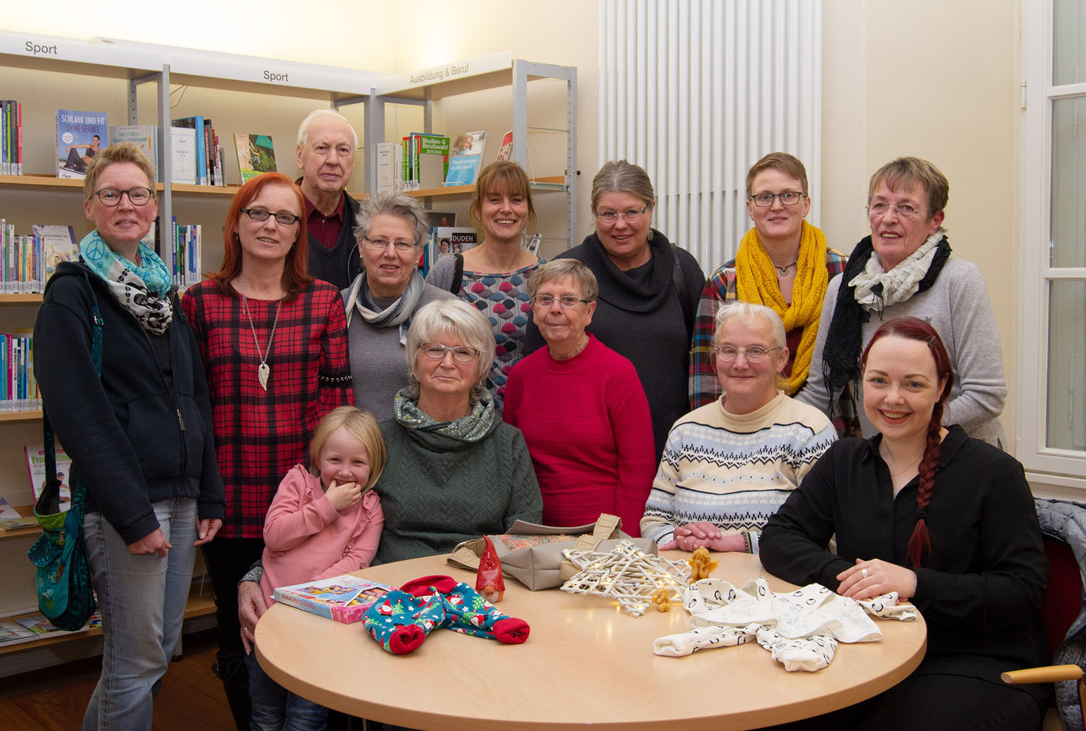 Selbst gefertigtes Kunsthandwerk, Handarbeiten, kulinarische Leckereien und vieles mehr – Büchereileiterin Stefanie Knippertz (vorne rechts) freut sich gemeinsam mit den Ausstellerinnen und Ausstellern auf viele Gäste beim Weihnachtsmarkt im und um das Haus Letmathe.